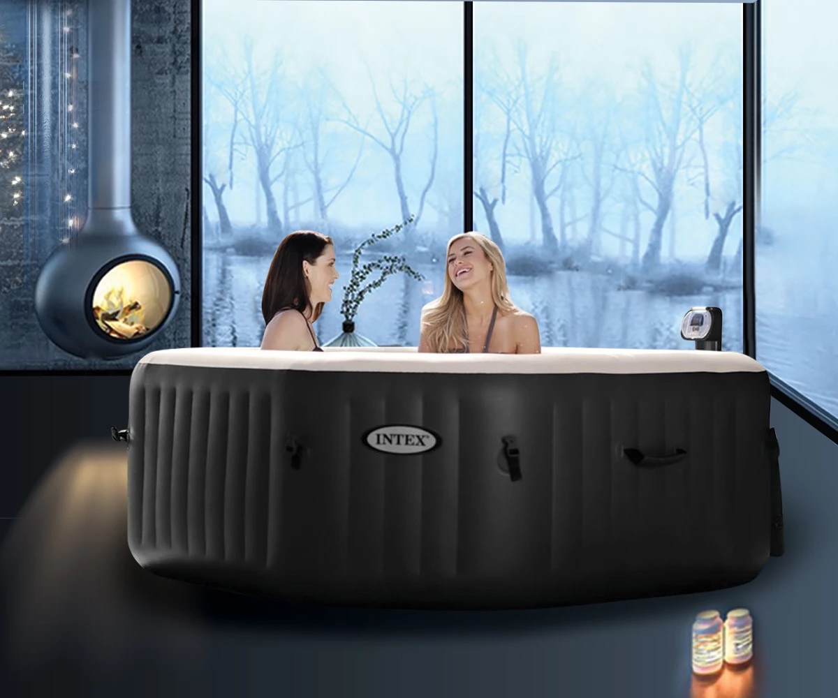28454 - Джакузи PureSpa™ Jet & Bubble Deluxe е e високо качествена масажна система със SPA функции, благодарение на своите 120 дюзи за балончета, 4 масажни дюзи и система за солена вода. Това е нов и революционен продукт, направен с FiberTechTM технология, която осигуряват отлична устойчивост на натоварвания. Лесно за монтаж и удобен интерфейс, джакузито е уникална възможност да пренесете SPA процедурите във вашия дом. Отпуснете се с приятен воден масаж в топла вода и комфорта на вашия дом/градина.