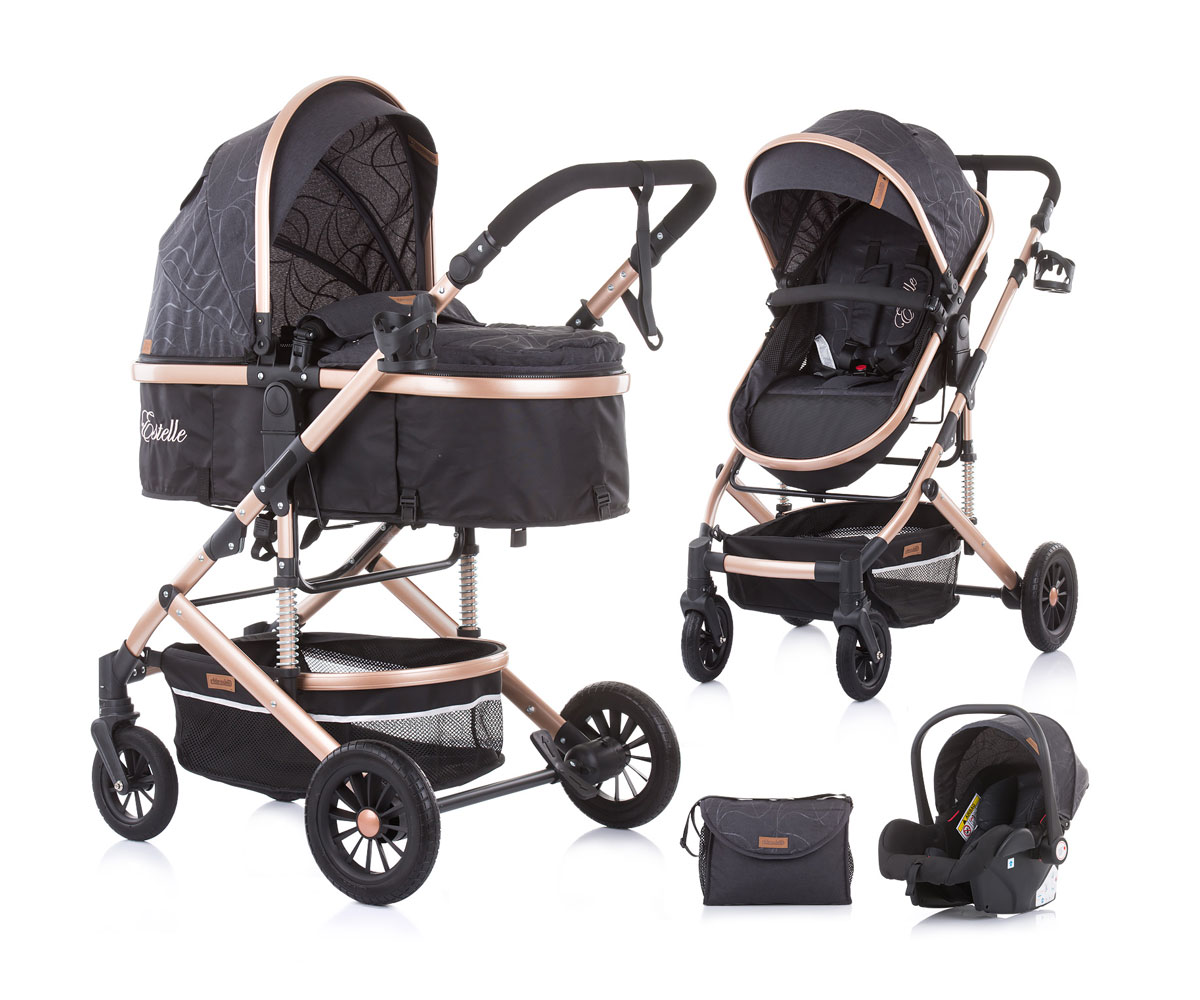 Комбинирана бебешка количка с трансформираща седалка до 15кг Chipolino Естел, антрацит