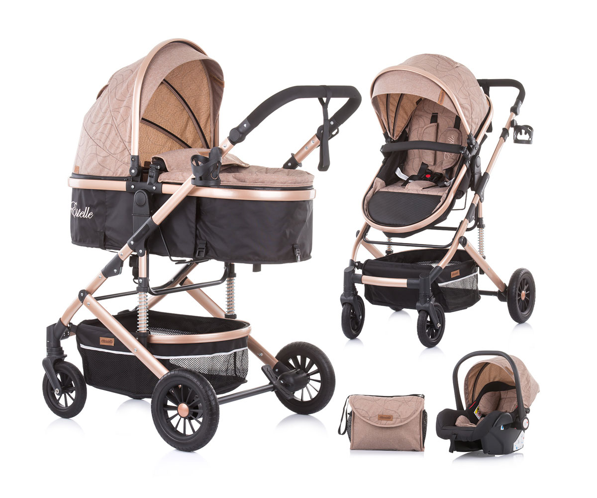 Комбинирана бебешка количка с трансформираща седалка до 15кг Chipolino Естел, хумус