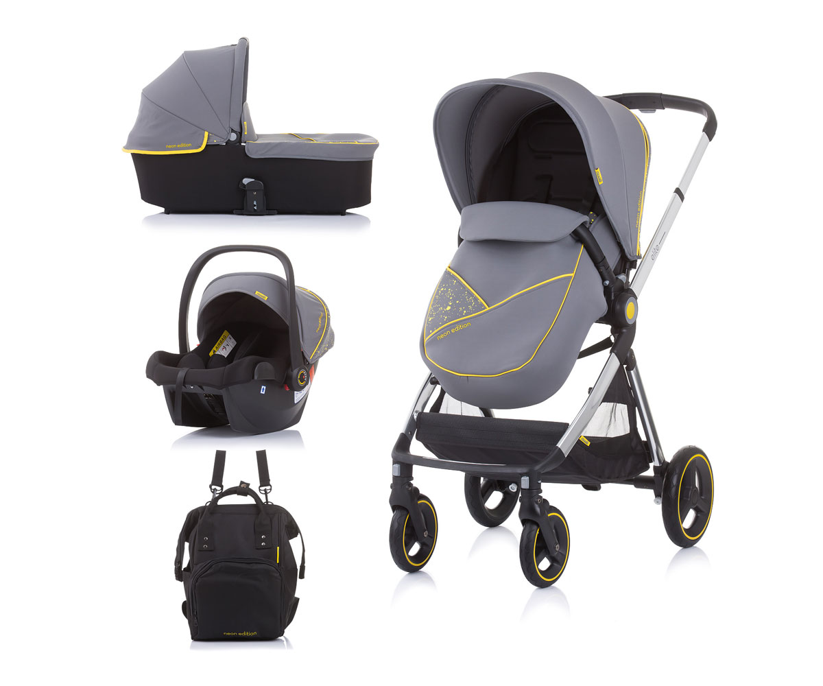 Комбинирана бебешка количка с твърд кош до 22 кг Chipolino Елит 3в1, платина