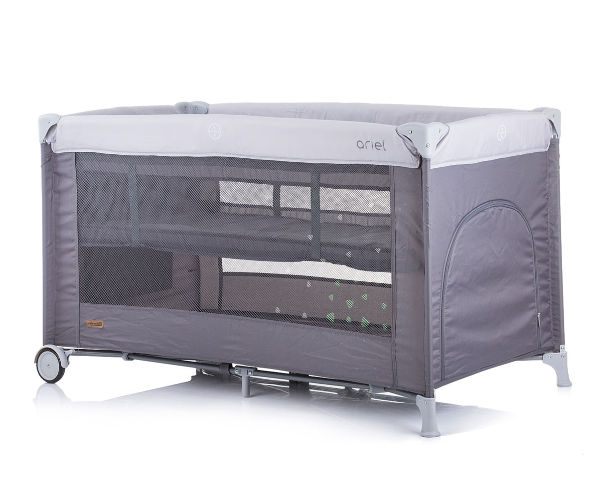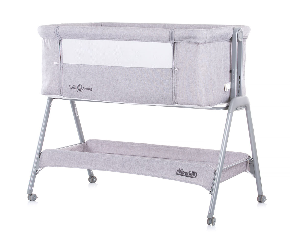 Бебешка кошара за спане с подвижна страница Chipolino Сладки сънища, сива с колела