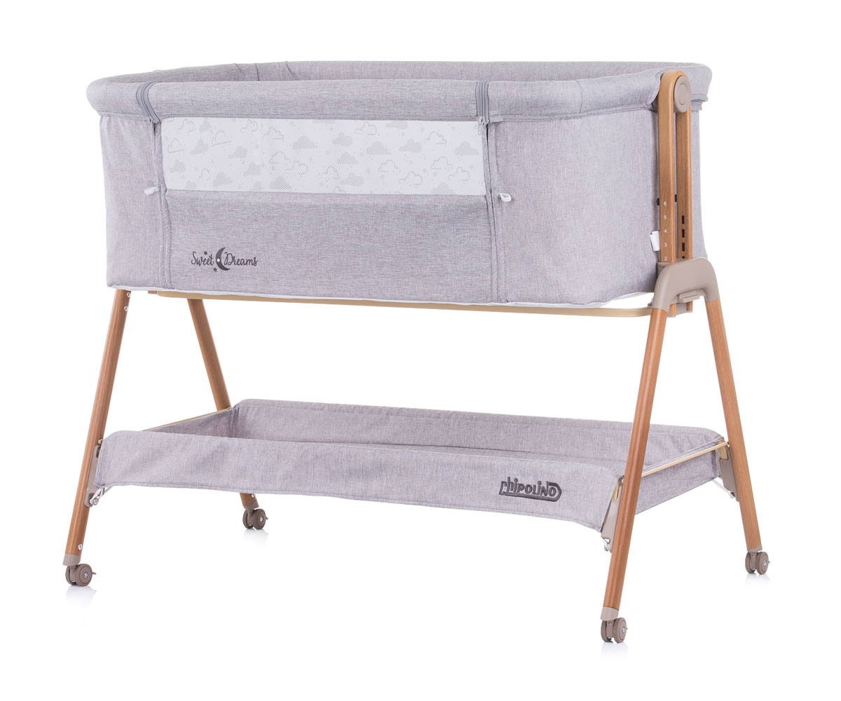 Бебешка кошара за спане с подвижна страница Chipolino Сладки сънища, сива/дърво