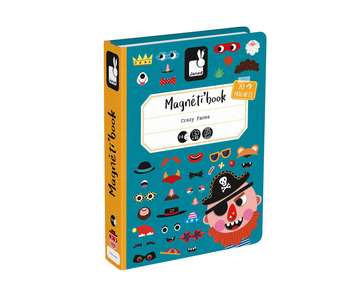 Магнитна книга Janod - Смешни лица на момчета