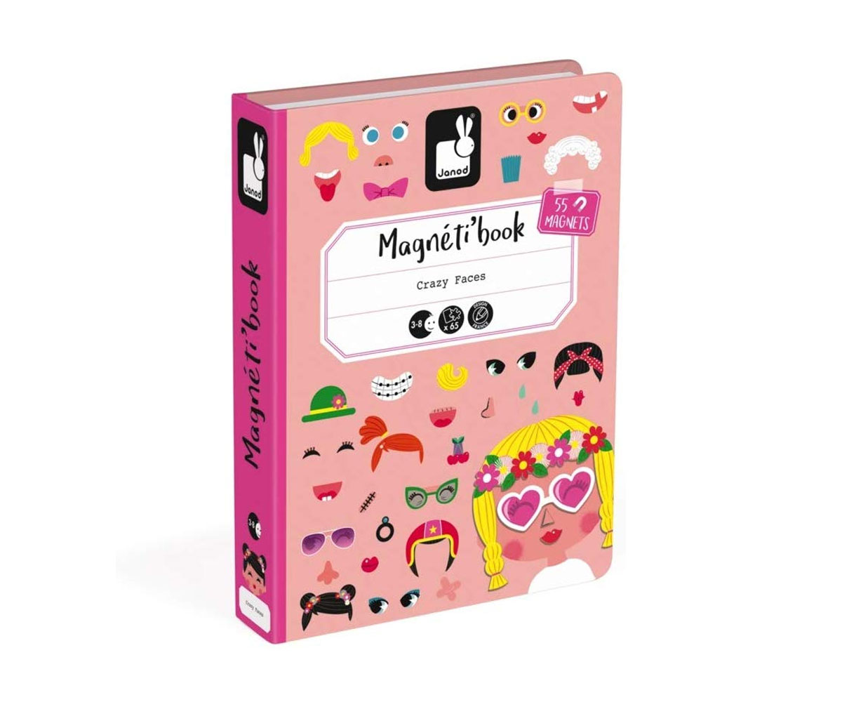 Магнитна книга Janod - Смешни лица на момичета