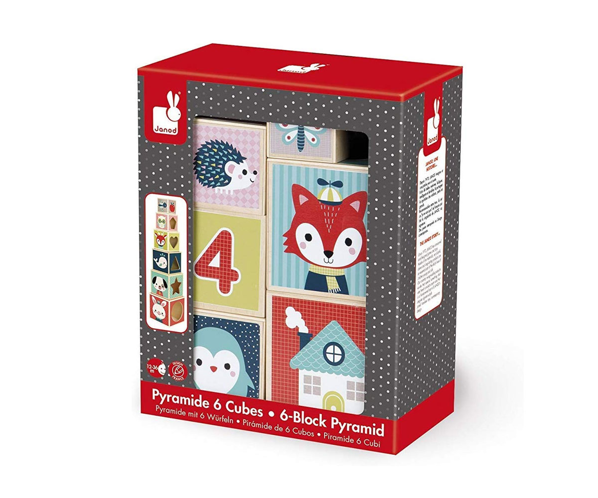 Пирамида от 6 кубчета Janod - Горски бебета животни