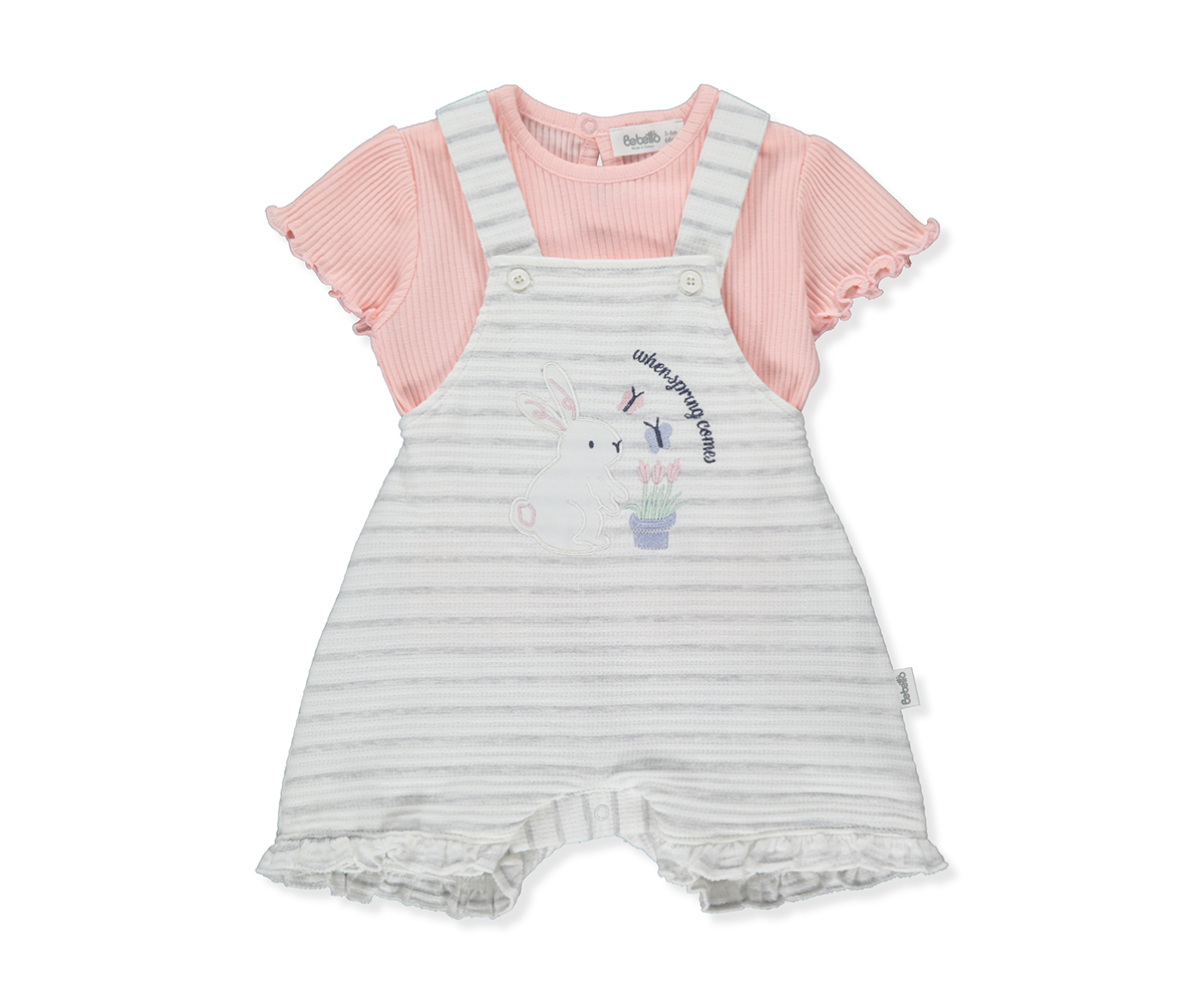 Bebetto - Комплект тениска с къс ръкав и къс гащеризон Comfort Day K4321, момиче, 6-24 м.