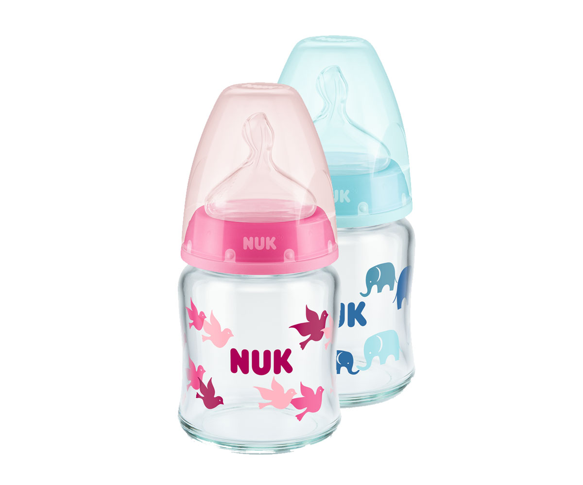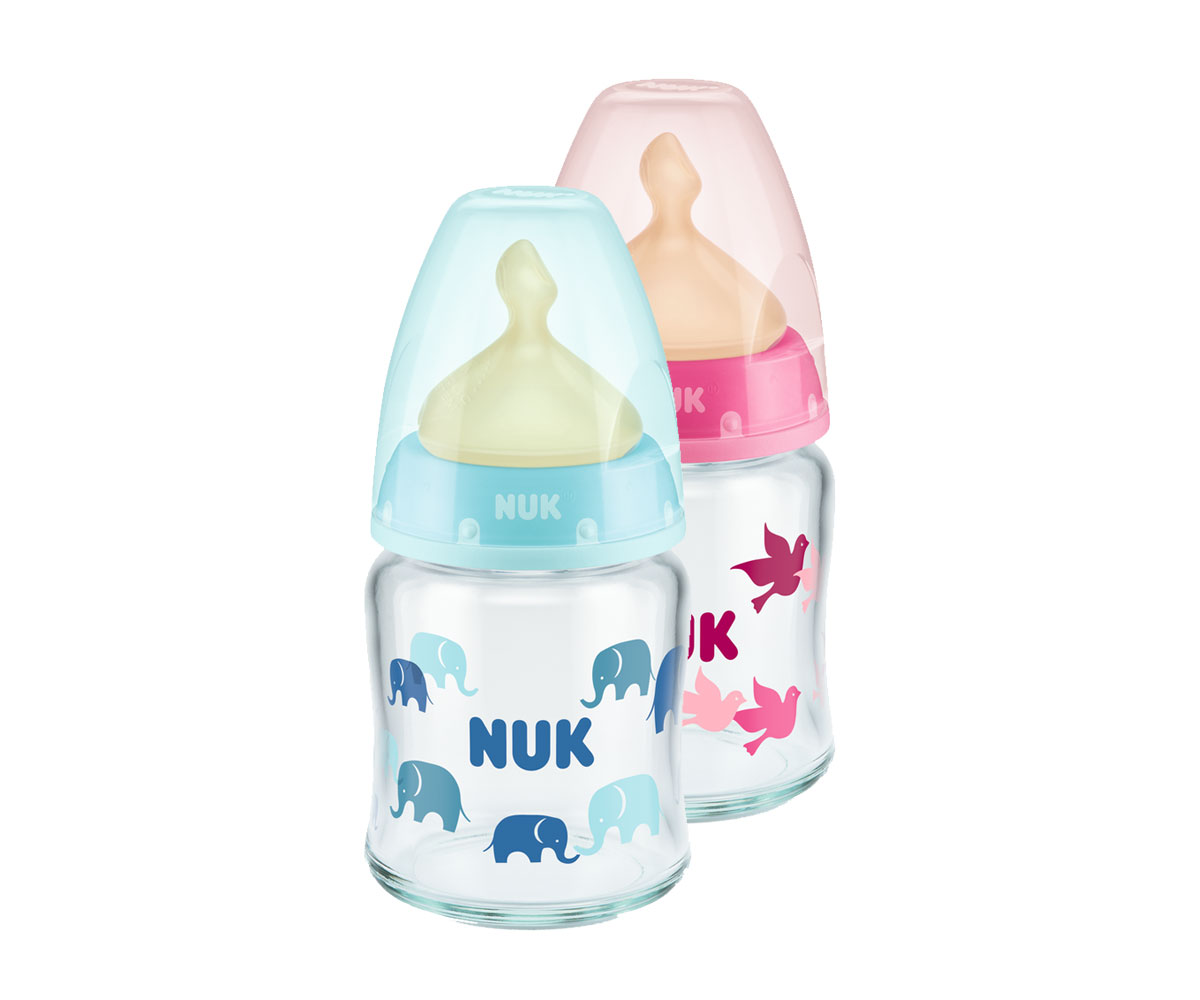 Бебешко стъклено шише Nuk First Choice Temperature Control, 120мл, каучук, 0-6м, асортимент
