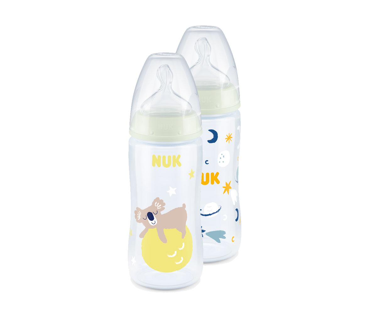 Бебешко пластмасово шише Nuk Termo control First Choice, РР, 300мл, силикон, Night, 0-6м
