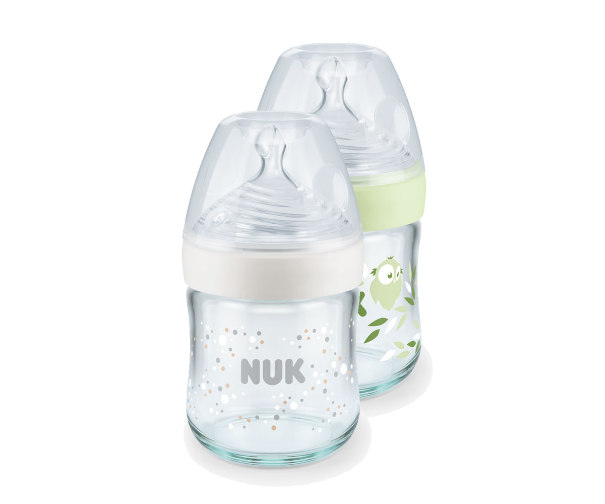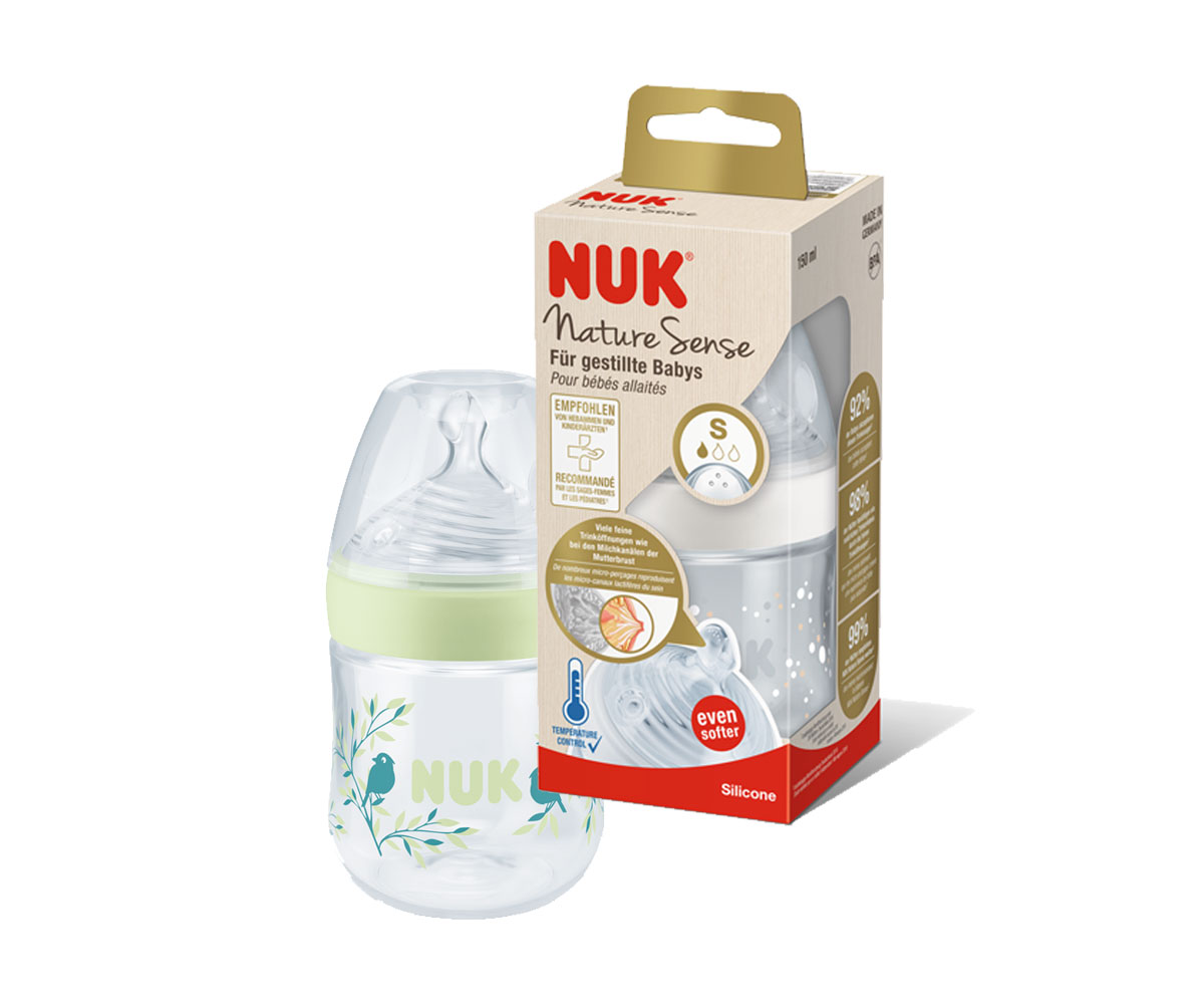 Бебешко стъклено шише Nuk Termo Control Nature Sense, 120мл, силикон, S softer, 0-6м, асортимент