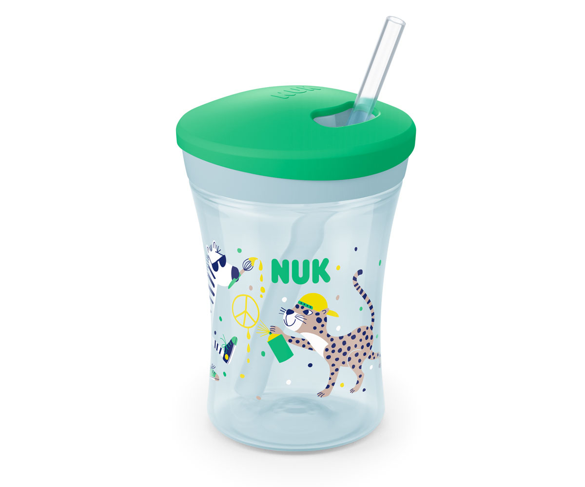 Неразливаща се чаша със сламка Nuk Evolution Action Cup, 230мл, зелена, 12м+