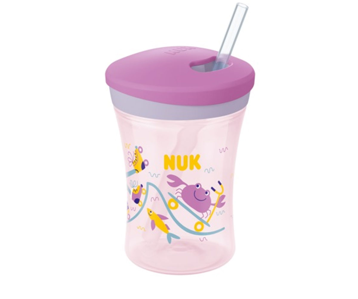 Неразливаща се чаша със сламка Nuk Evolution Action Cup, 230мл, розова, 12м+