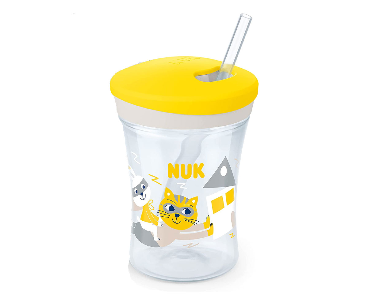Неразливаща се чаша със сламка Nuk Evolution Action Cup, 230мл, жълта, 12м+