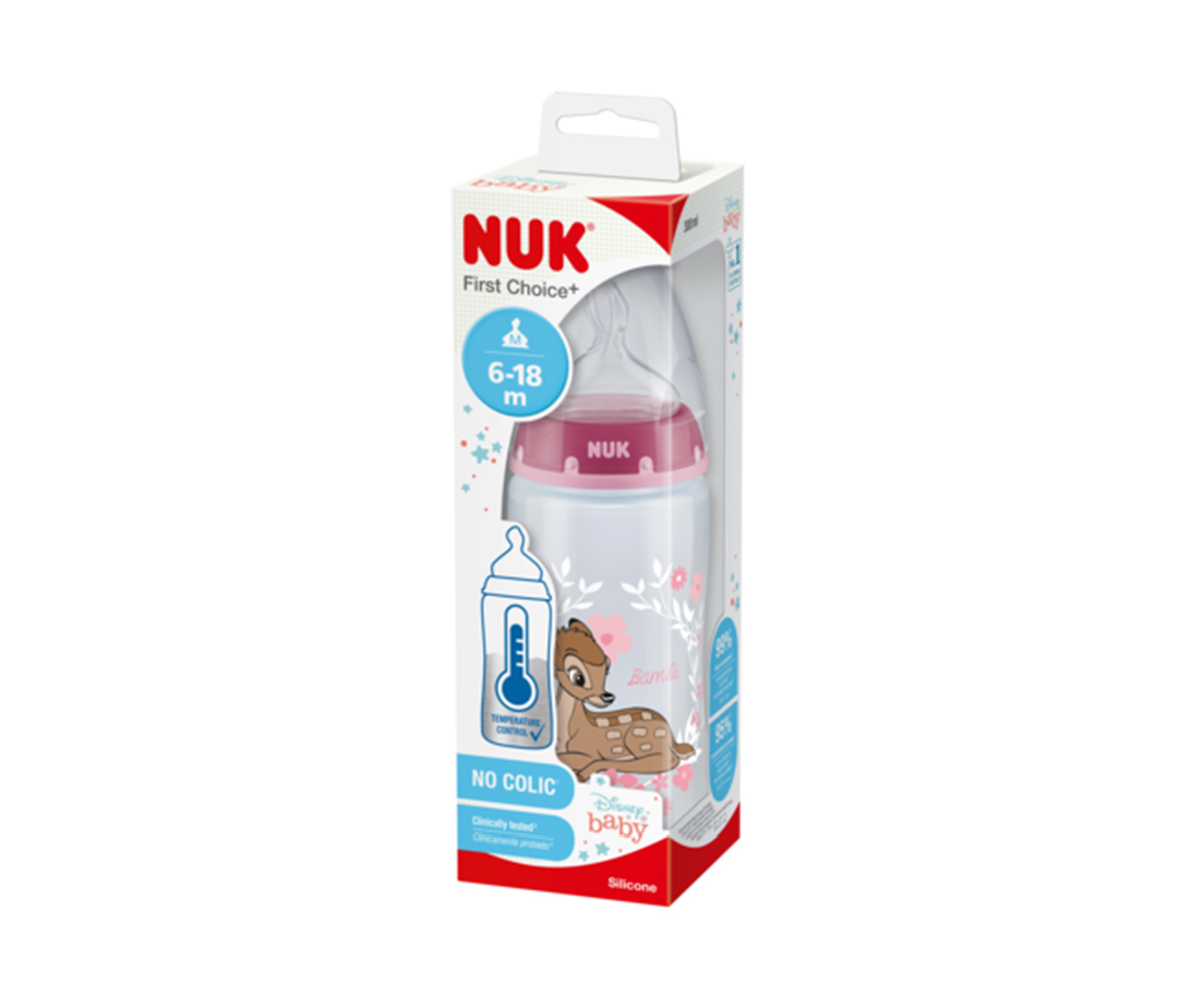 Бебешко шише Nuk First Choice Temperature control, 300 мл, силикон, Bambi, 6-18м