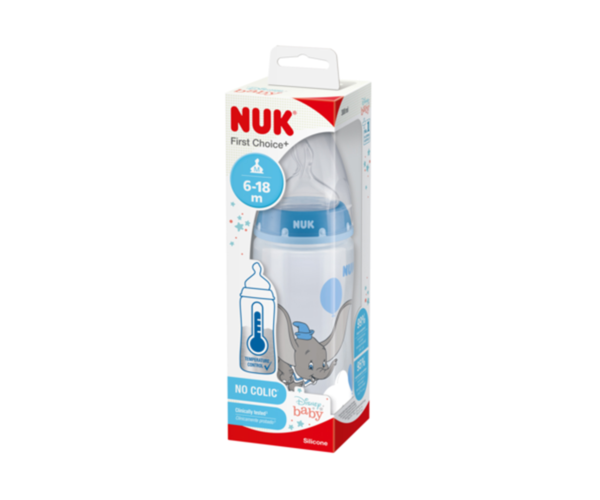 Бебешко шише Nuk First Choice Temperature control, 300 мл, силикон, Dumbo, 6-18м