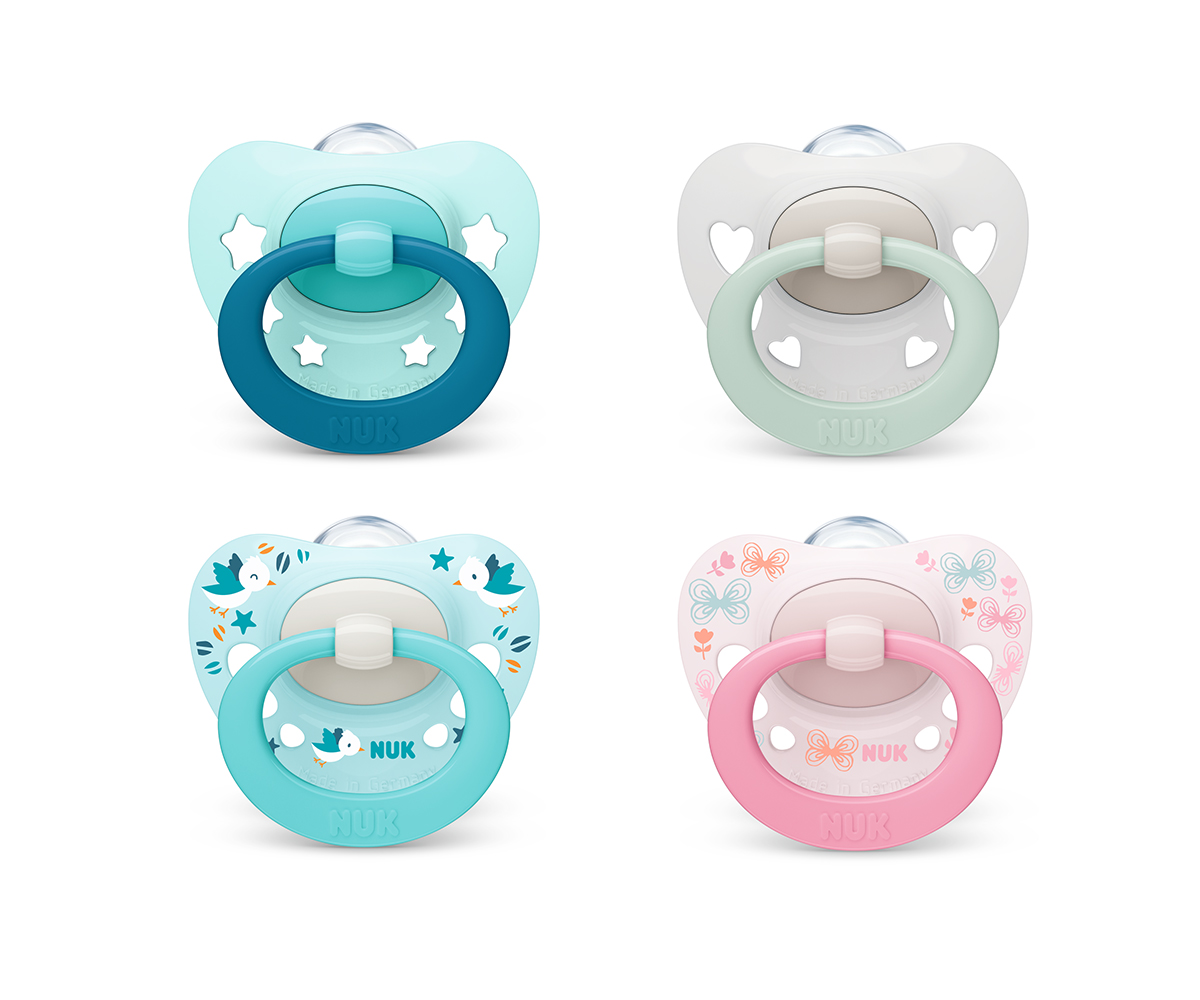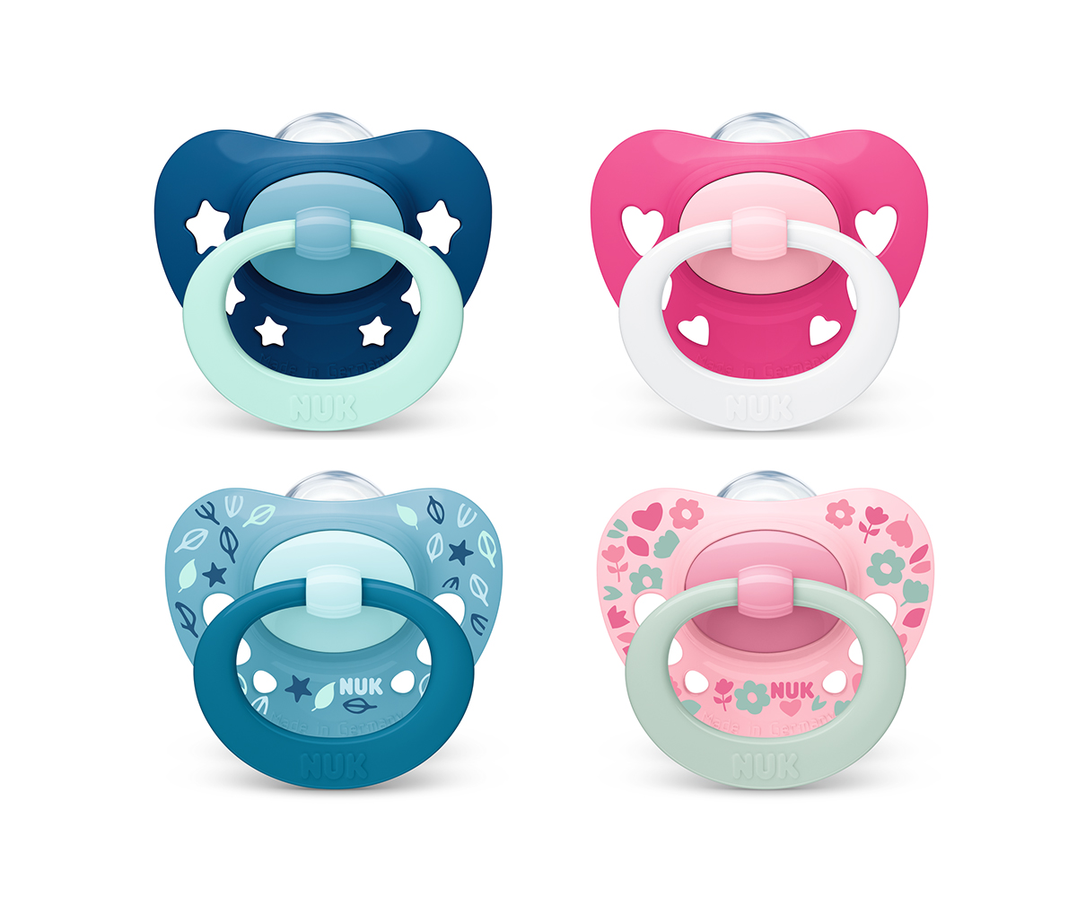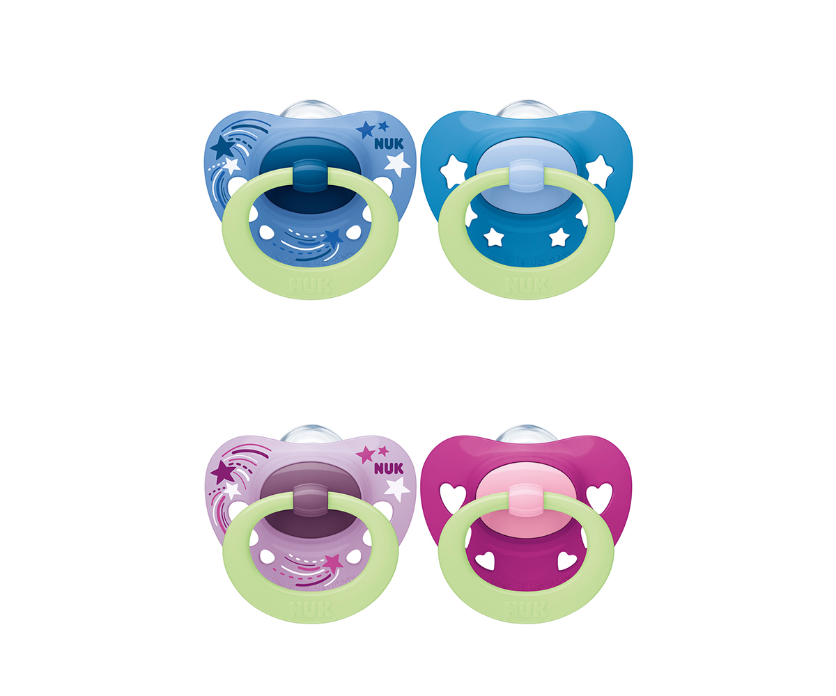 Каучукова залъгалка Nuk Star, 2 броя, с кутийка, 0-6м, асортимент