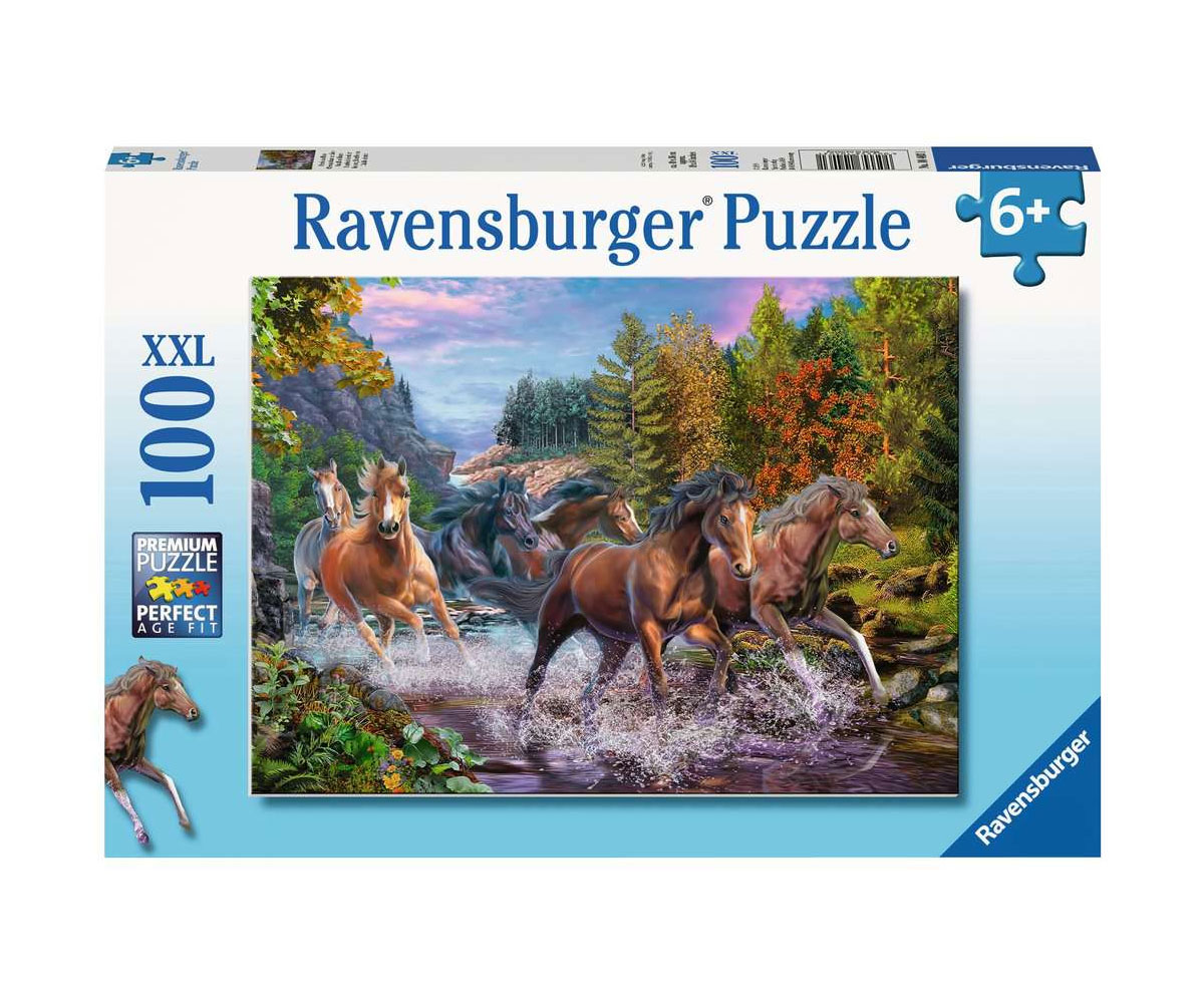 Пъзел Ravensburger 100 ел. XXL - Препускащи коне в река