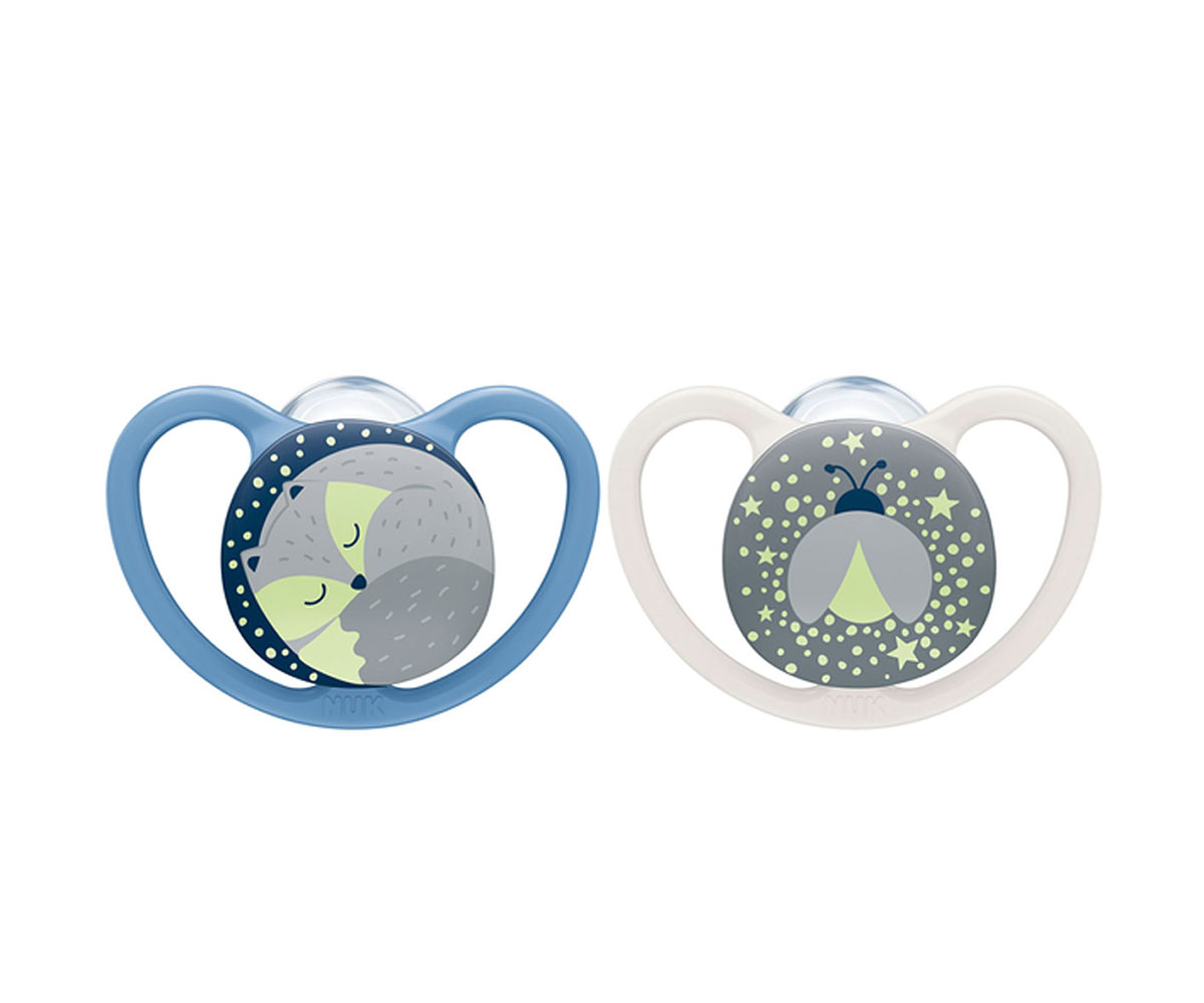 Силиконова залъгалка Nuk Space/Night, 18м+, 2 броя, с кутийка, момче