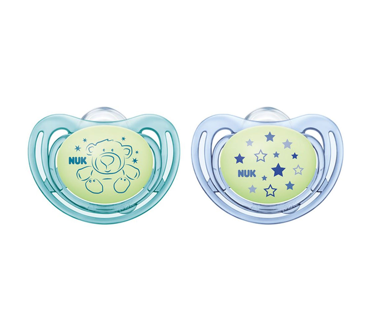 Силиконова залъгалка Nuk Freestyle Night, 0-6м, 2 броя, сини