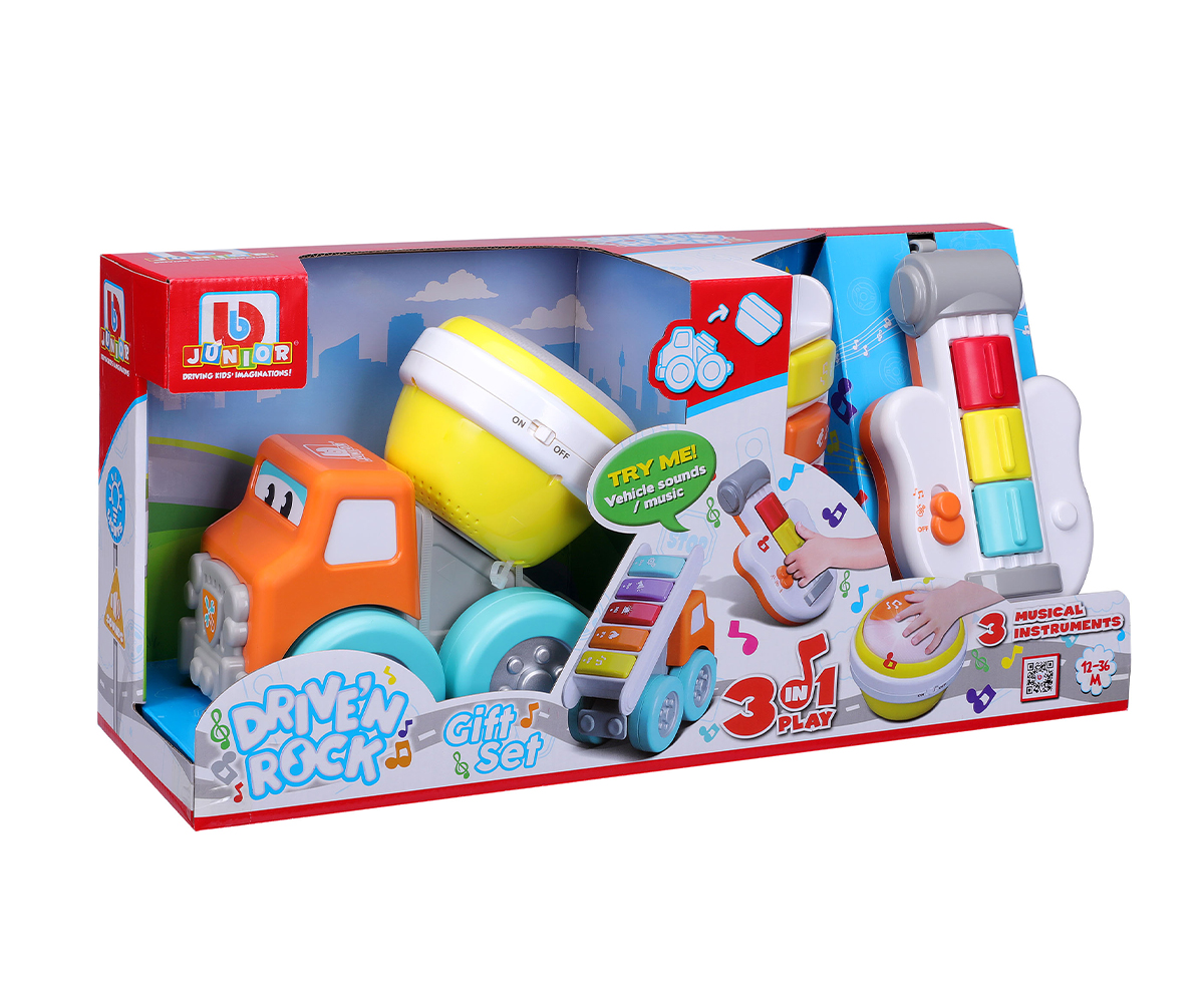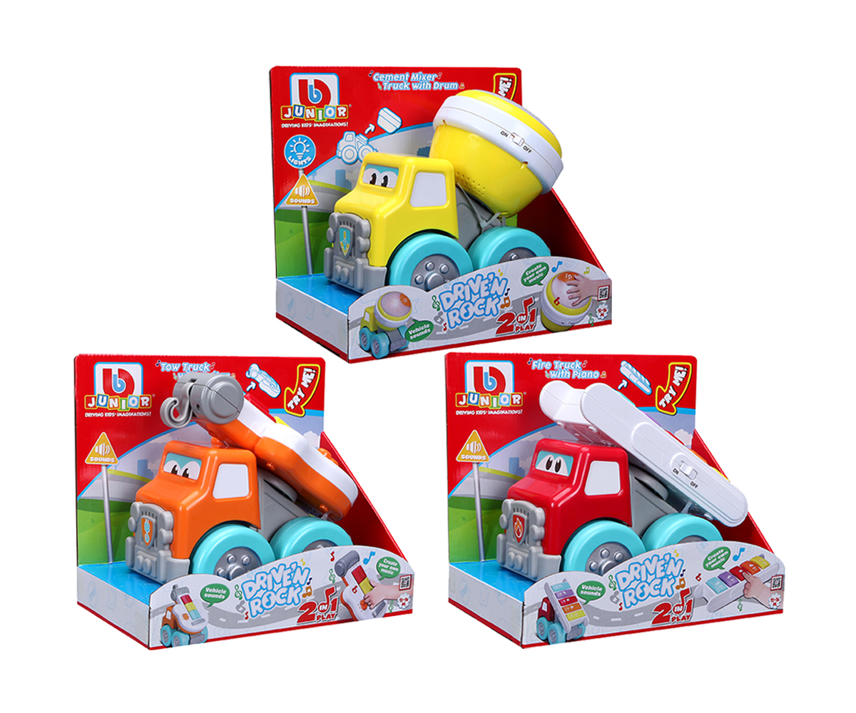 Bburago Junior - Drive 'N Rock строителен камион с батерии, пожарна с пиано