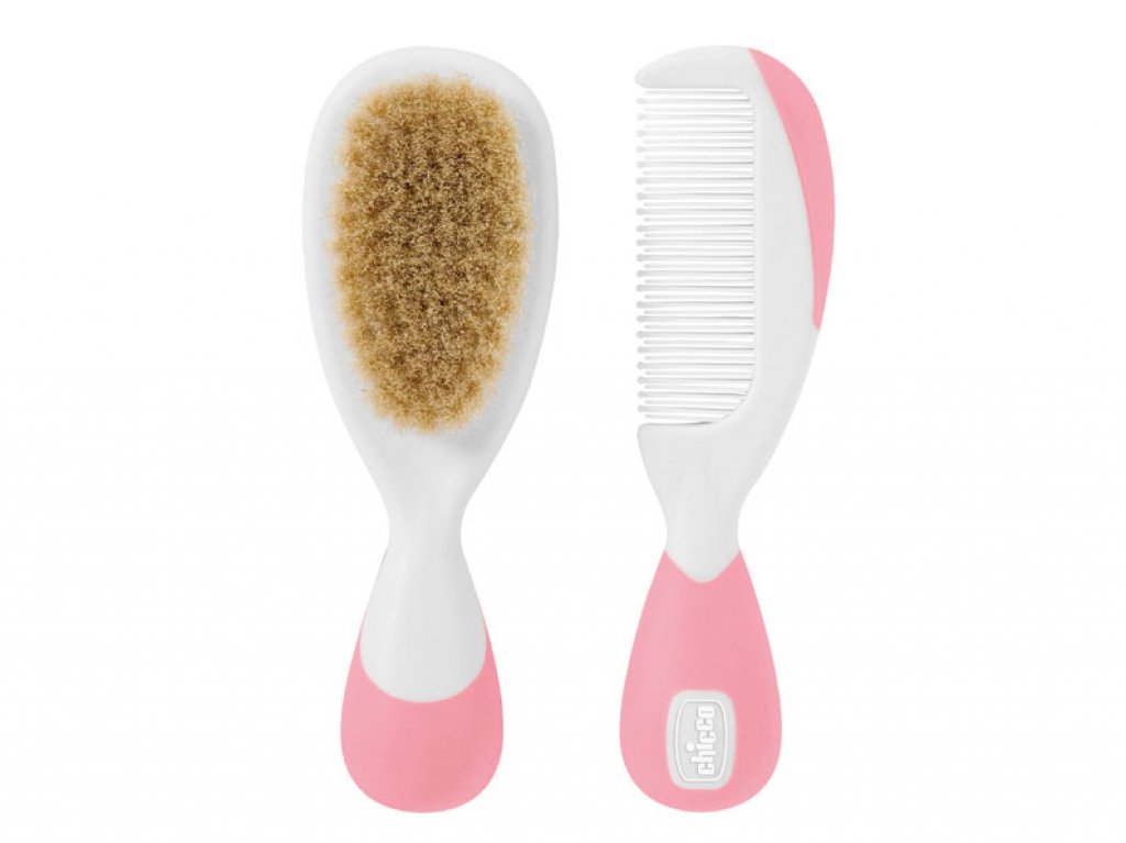 Бебешки четка и гребен естествен косъм Chicco, розови