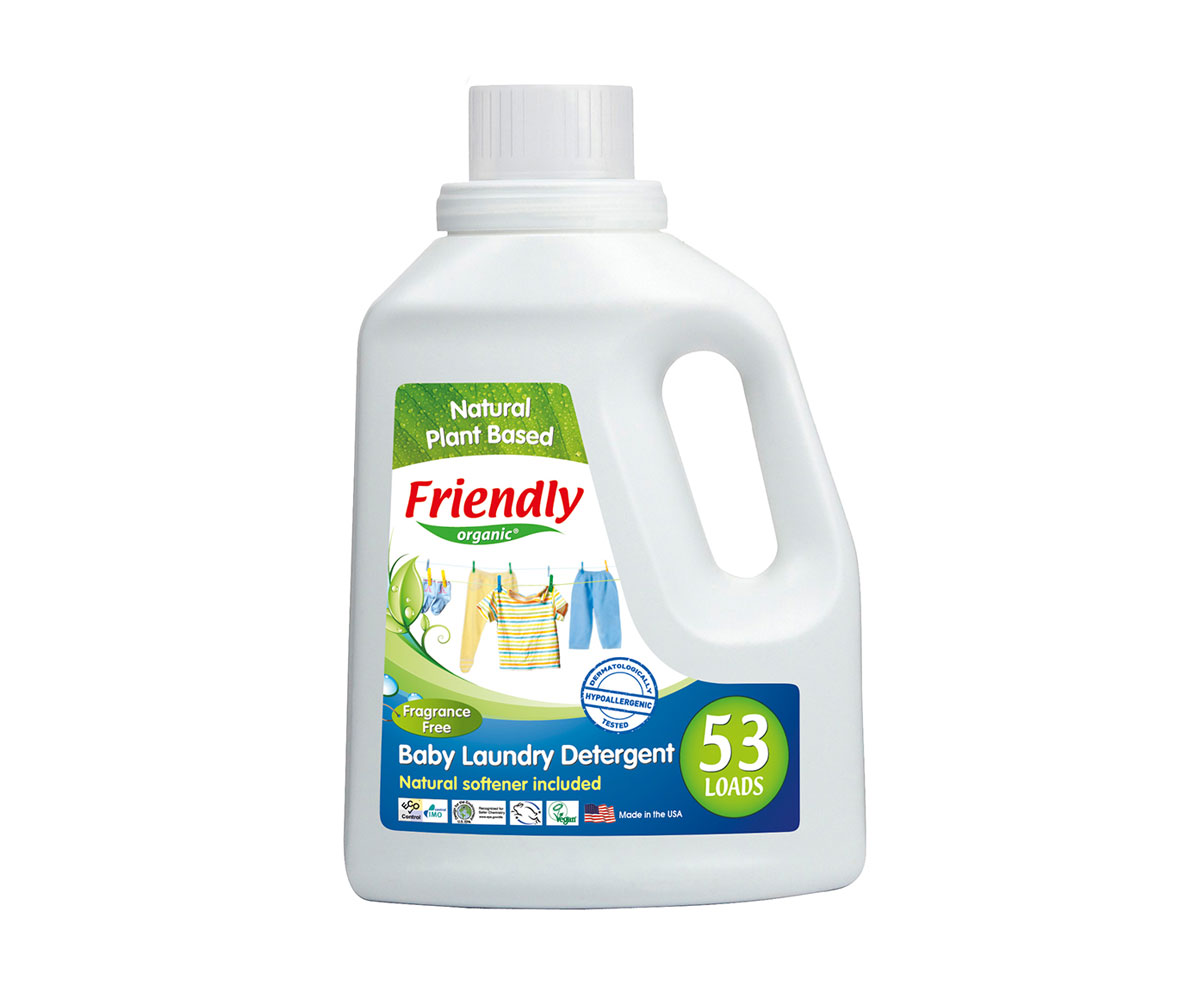 Концентриран гел за пране на бебешки дрехи с омекотител Friendly, без аромат, 1.57л