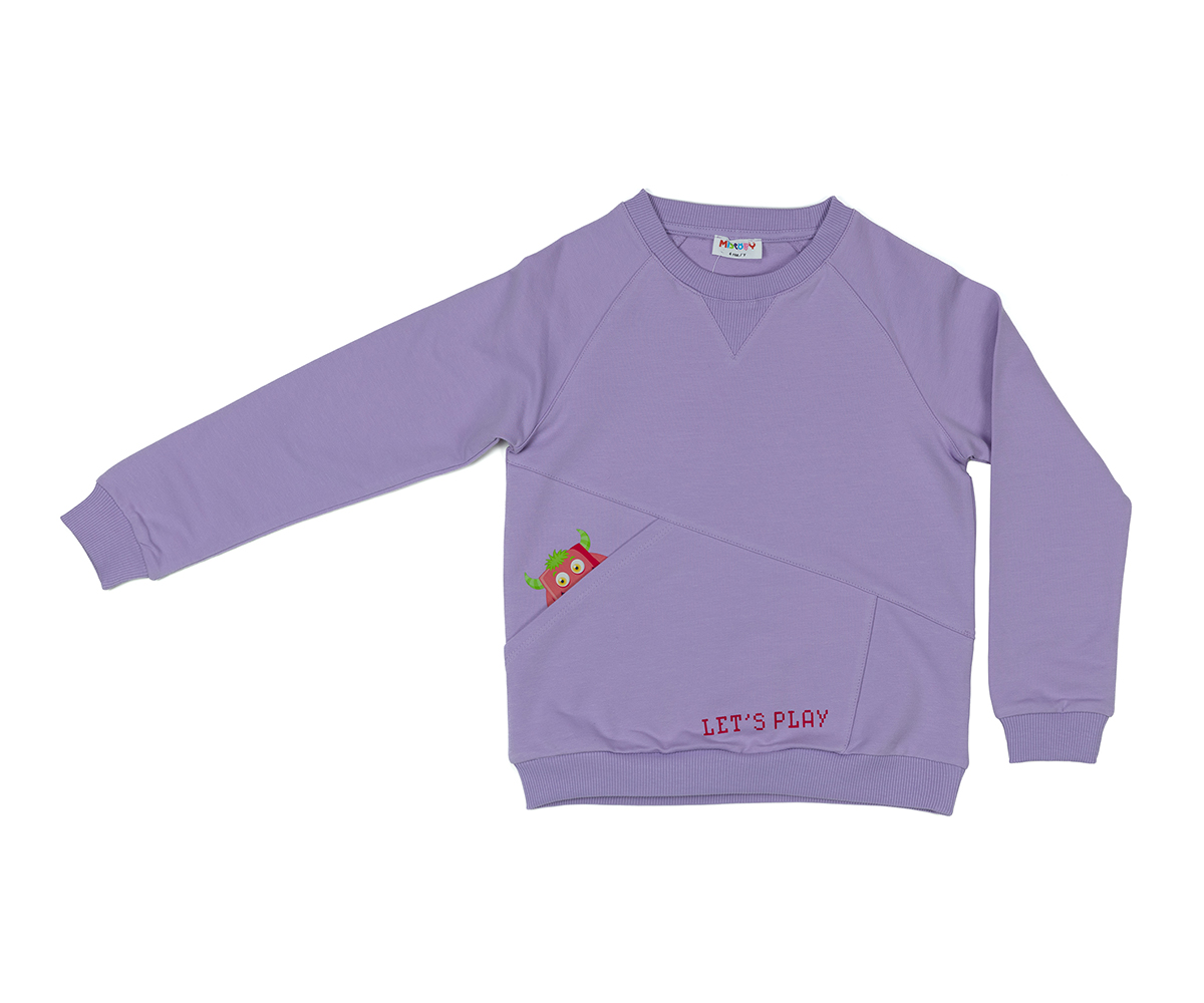 MiStory-Суитшърт с принт и джоб, ръст 98 см (овърсайз), 3г., лилав