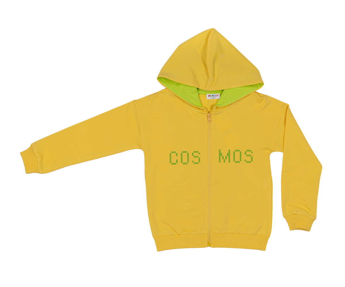MiStory-Суитшърт с принт Cosmos, качулка и цип, ръст 98 см (овърсайз), 3г., жълт