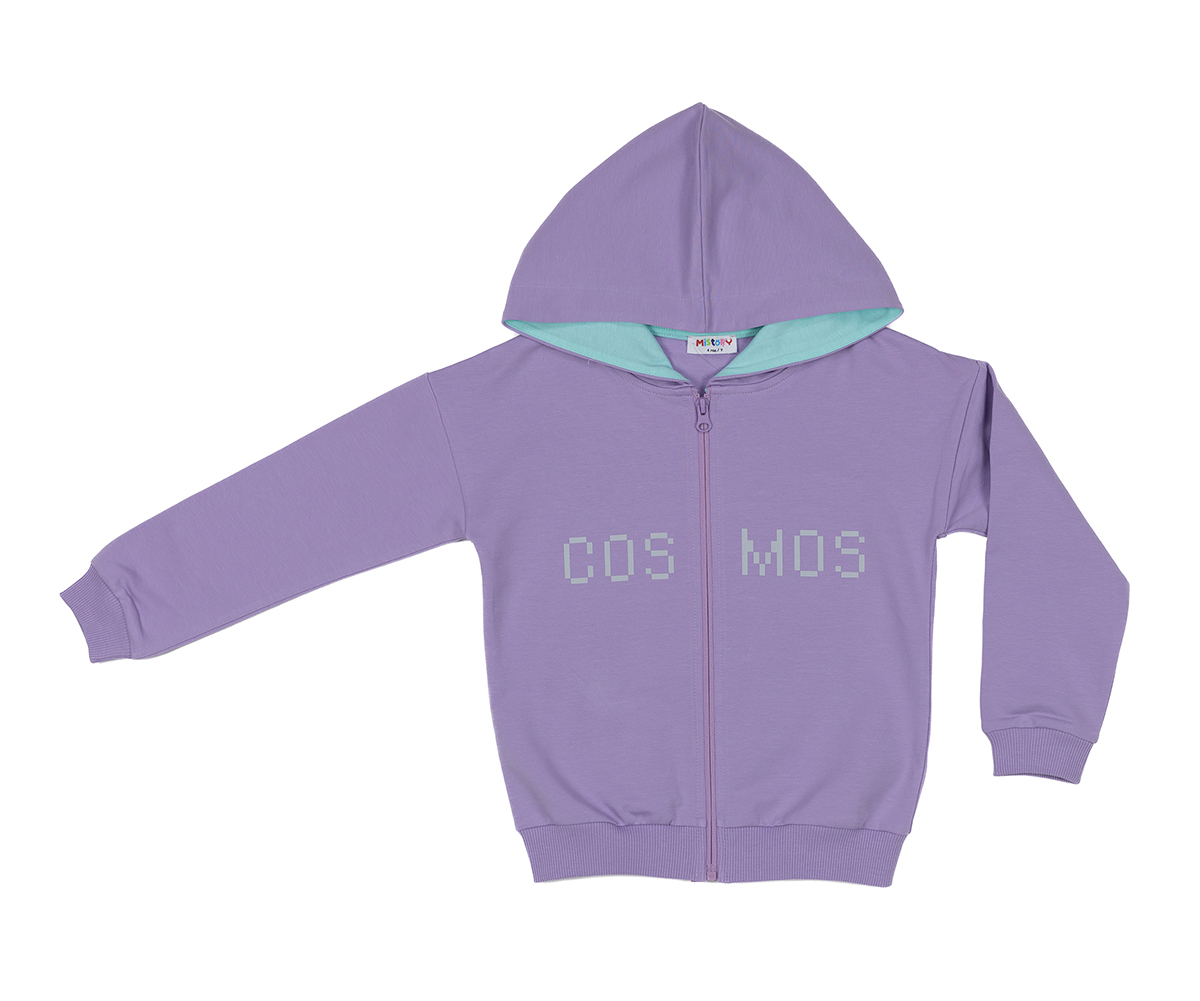MiStory-Суитшърт с принт Cosmos, качулка и цип, ръст 122 см (овърсайз), 7 г., лилав