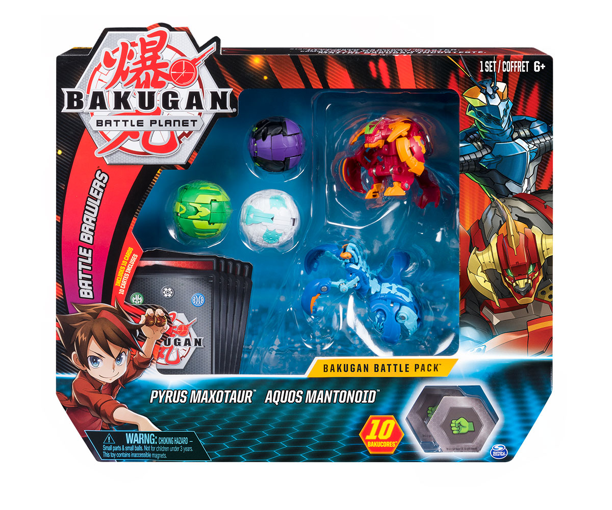 Боен пакет с 5 топчета Bakugan, Pyrus Maxotaur&Aquos Mantanoid