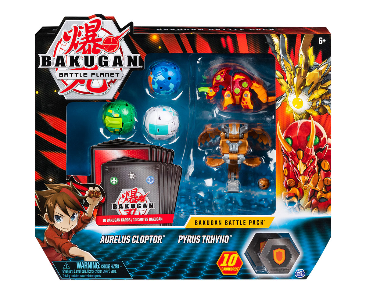 Боен пакет с 5 топчета Bakugan, Aurelus Cloptor&Pyrus Trhyno