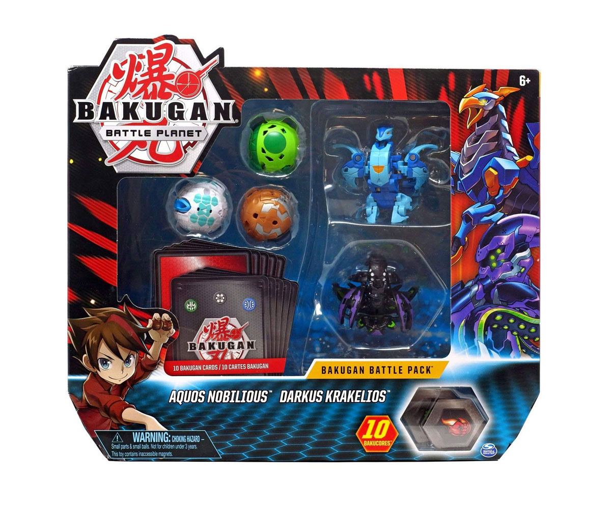 Боен пакет с 5 топчета Bakugan, Aquos Nobilious&Darkus Krakelios