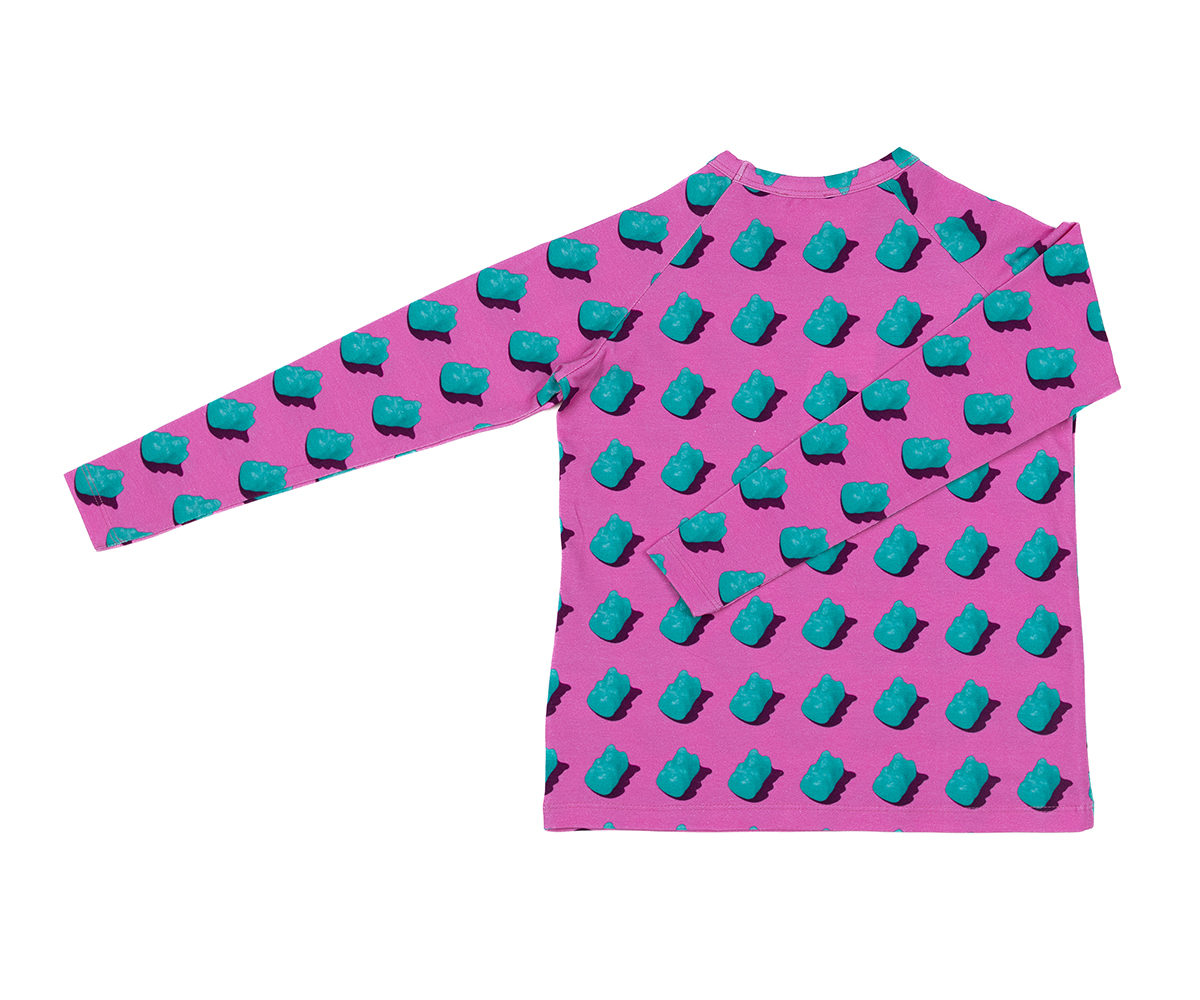 MiStory-Тениска дълъг ръкав с принт гумени мечета, ръст 122 см, 7 г., розова