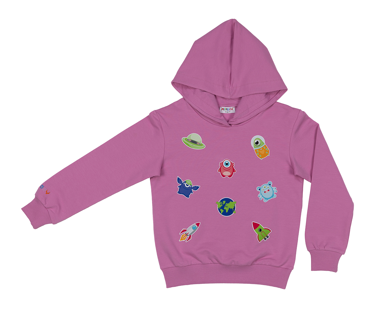 MiStory-Суитшърт с щампи и качулка, ръст 116 см (овърсайз), 6 г., розов