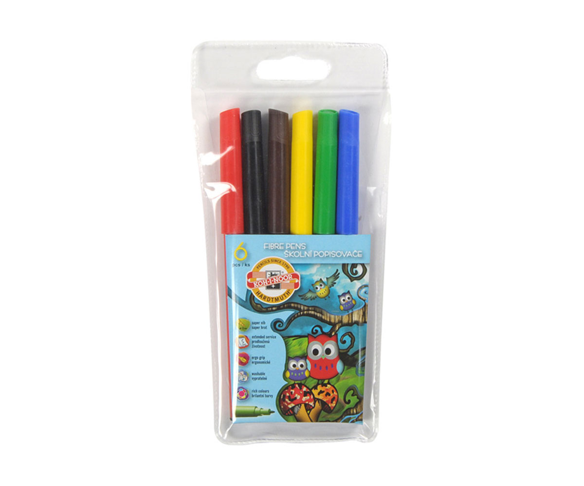 Флумастери Koh-i-Noor бухалчета, 6 цвята