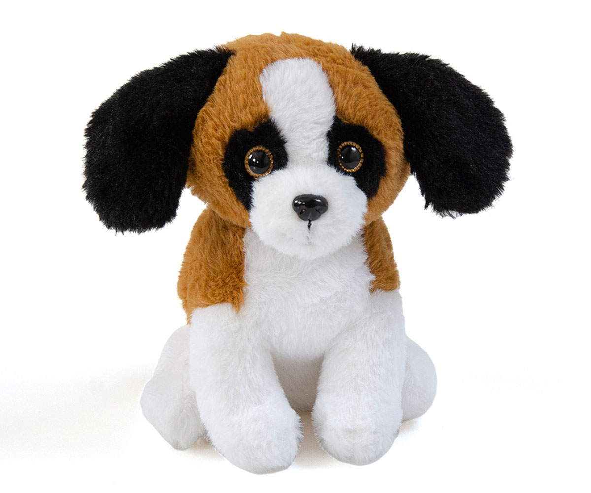 Плюшена играчка - Кученце 24 см, бяло с кафяво и черни уши