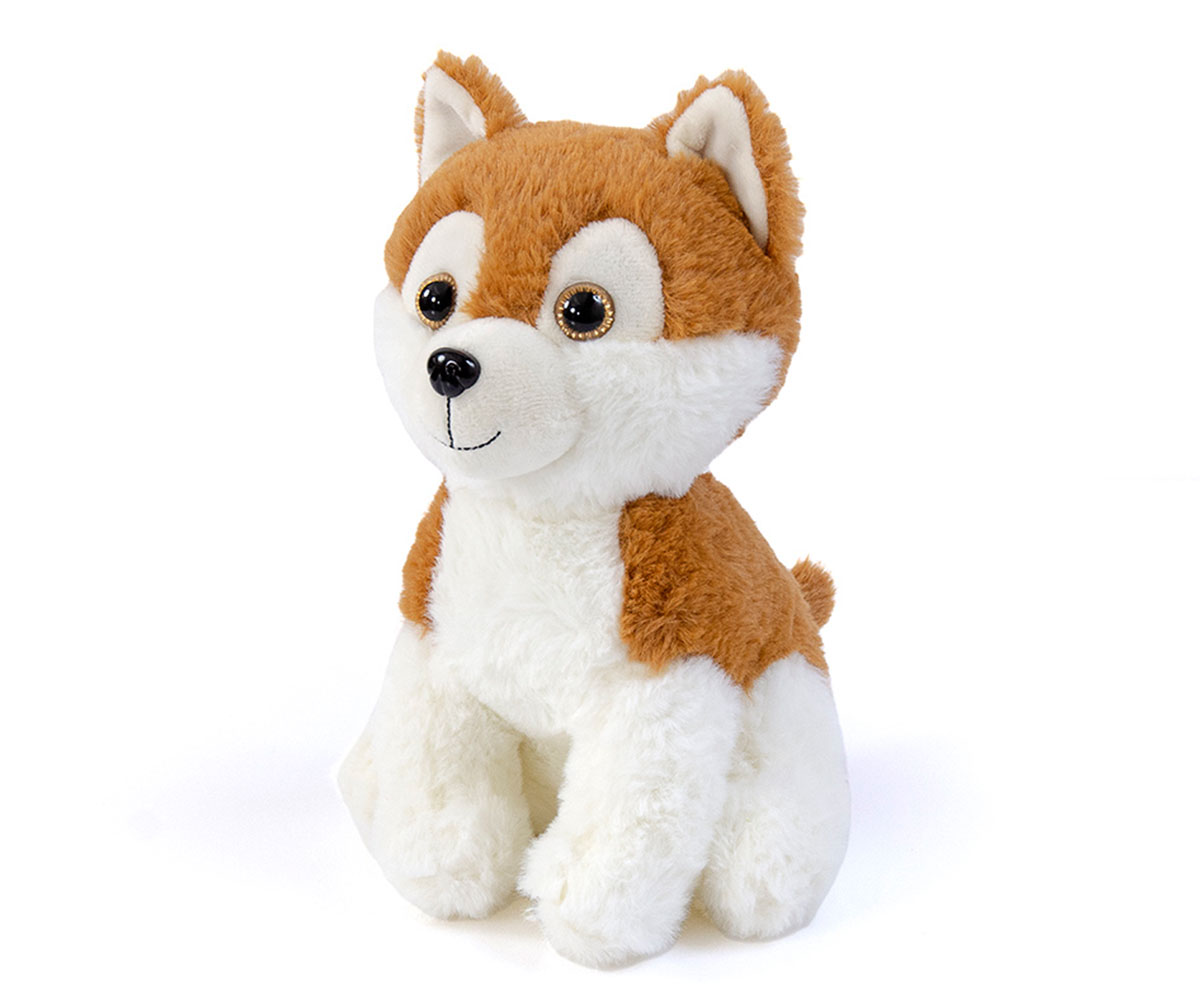 Плюшена играчка - Кученце 24 см, бяло с кафяво и изправени уши