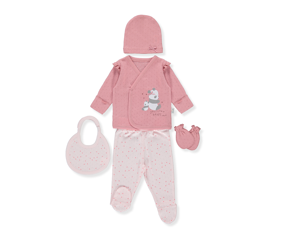 Bebetto - Комплект за изписване 5 части Happy Panda Z879P, момиче, розов, 0-3 м.