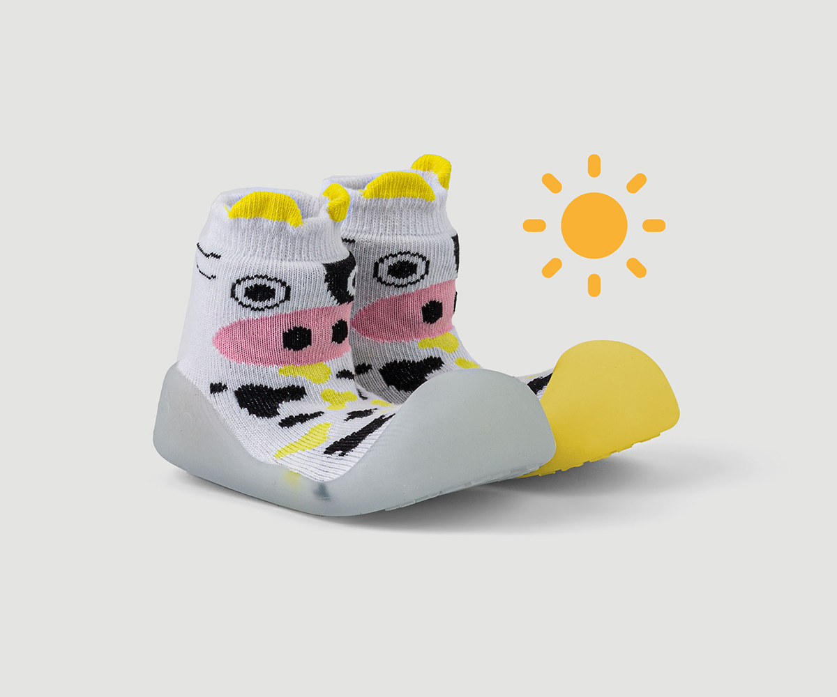 Chameleon-Бебешки обувки-чорапче Крава, M (109-115мм), 6-12 м.