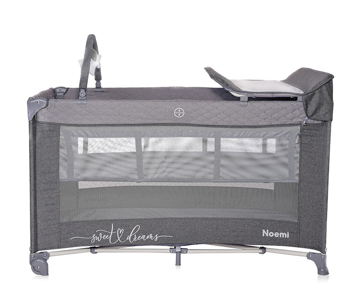 Преносима бебешка кошара на 2 нива за спане и игра Lorelli Noemi Plus, Cool Grey Star