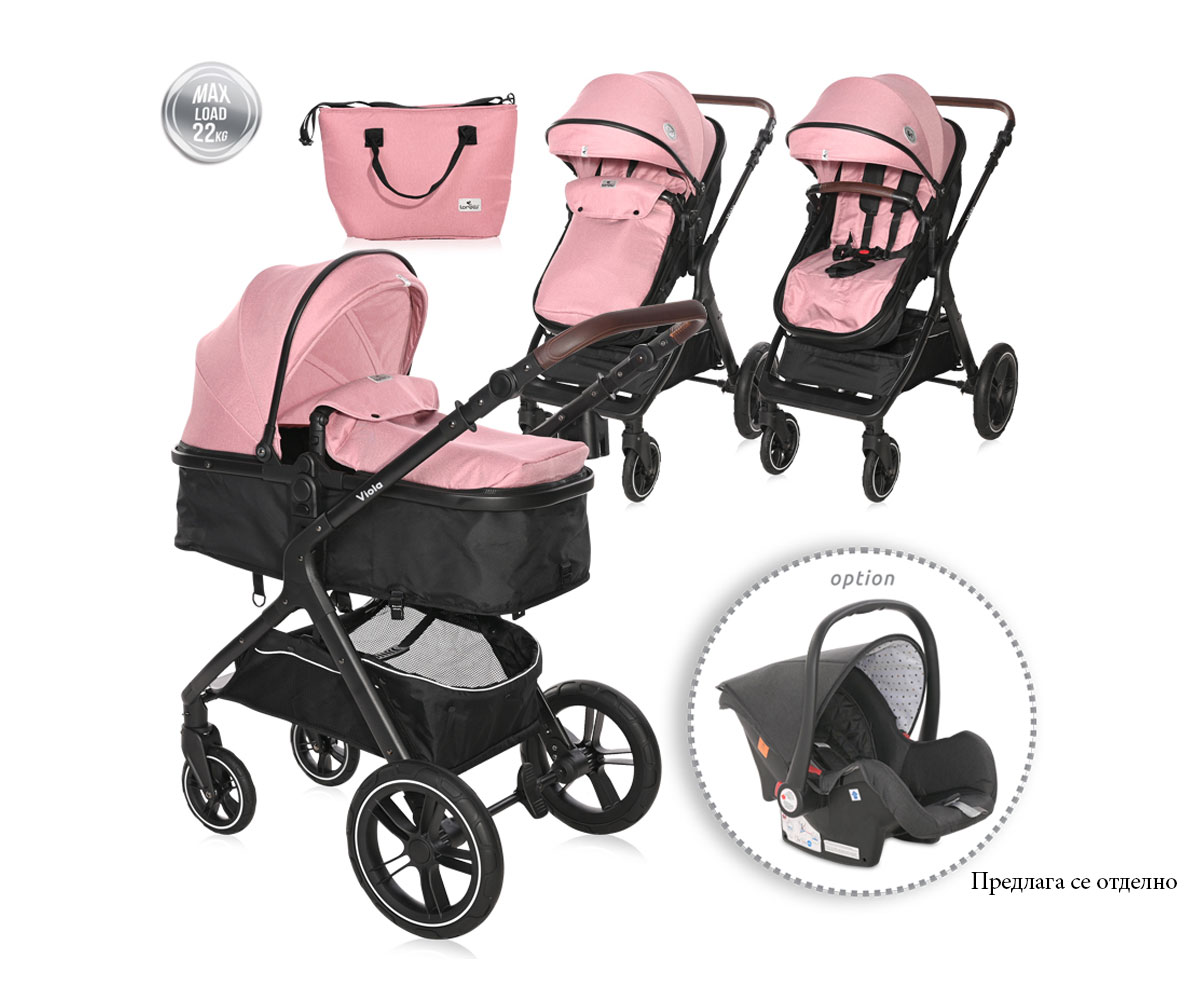 Комбинирана бебешка количка с трансформираща седалка до 22 кг. Lorelli Viola, Pink