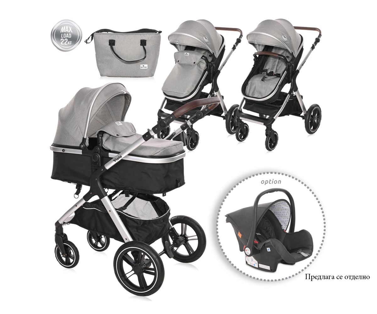 Комбинирана бебешка количка с трансформираща седалка до 22 кг. Lorelli Viola, Opaline Grey