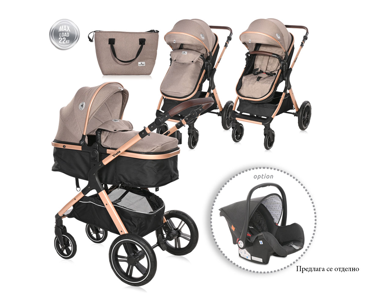 Комбинирана бебешка количка с трансформираща седалка до 22 кг. Lorelli Viola, Pearl Beige