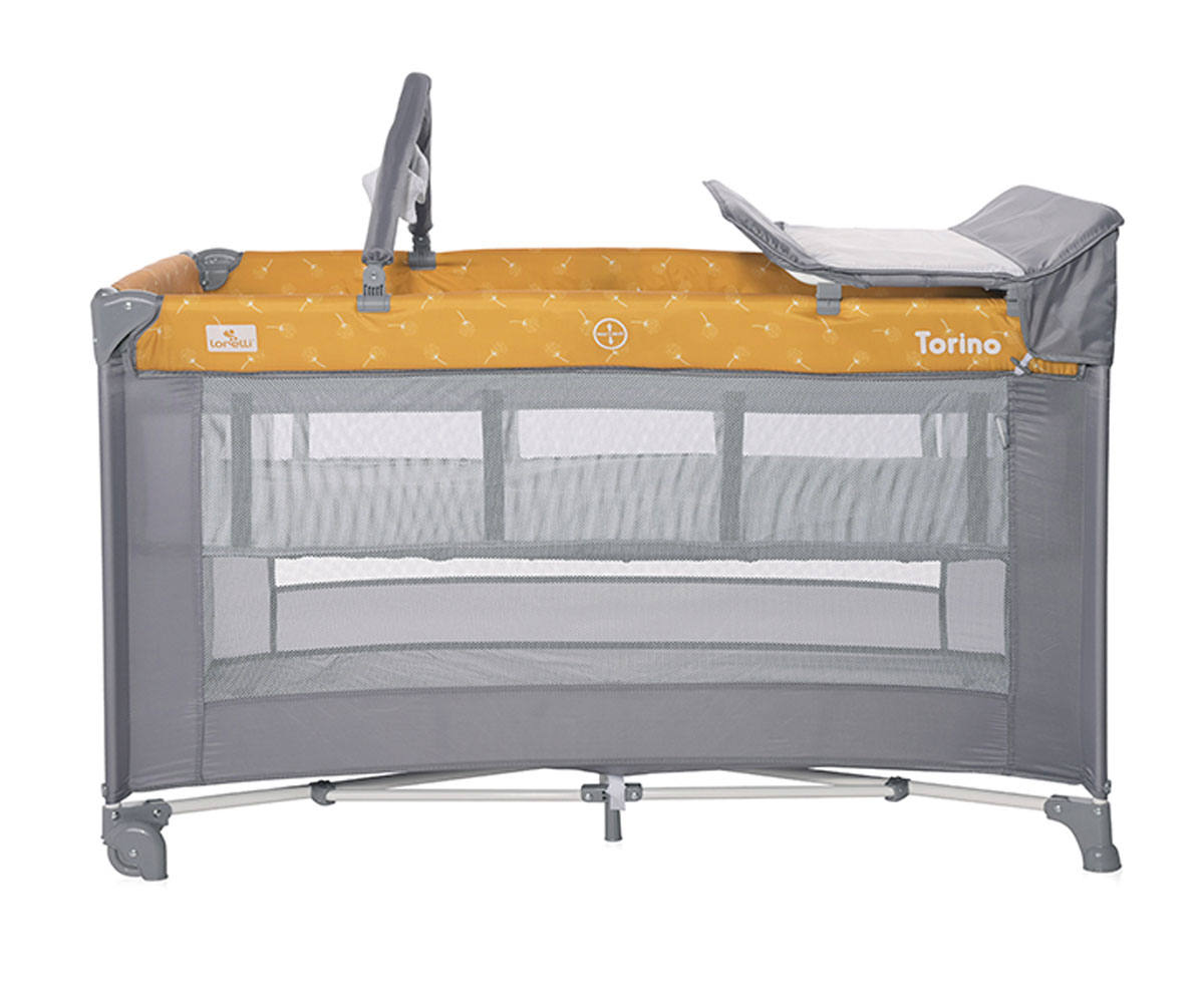 Преносима бебешка кошара на 1 ниво за спане и игра Lorelli Torino, Lemon Curry Floral