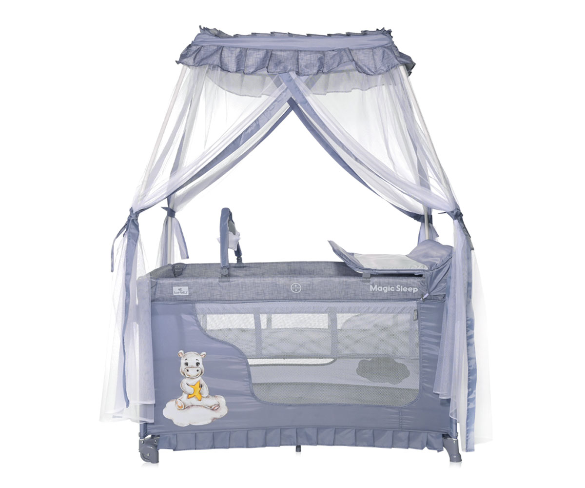 Преносима бебешка кошара на 2 нива за спане и игра Lorelli Magic Sleep, Cool Grey Hippo