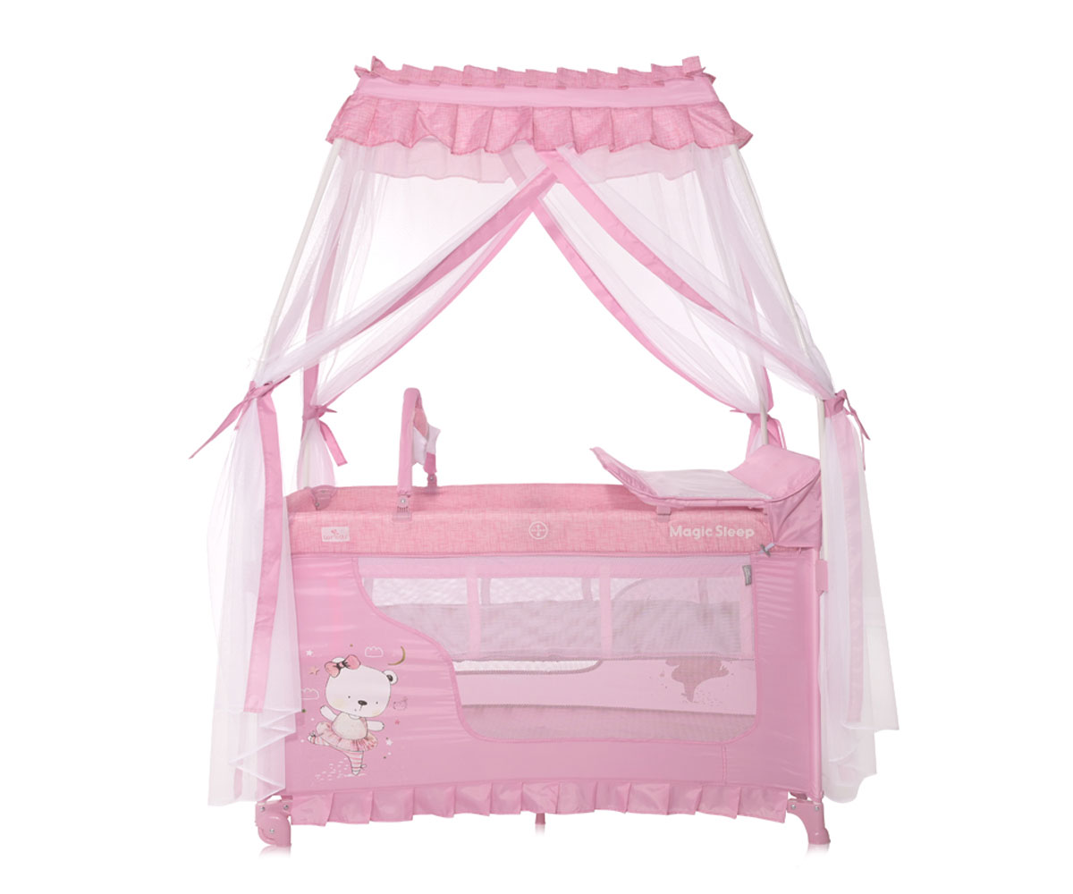 Преносима бебешка кошара на 2 нива за спане и игра Lorelli Magic Sleep, Mellow Rose Ballerina Bear