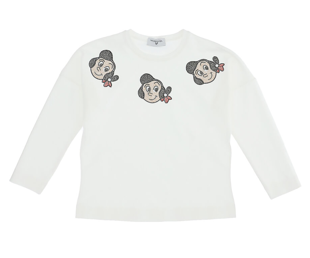 Блуза с дълъг ръкав с кристали и принт Оливия Monnalisa, момиче, 4 г.
