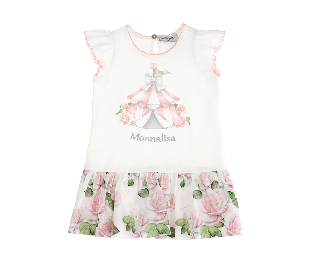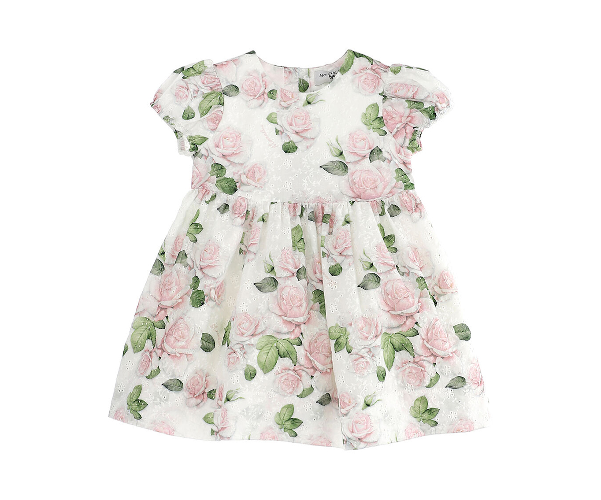 Рокля с къс ръкав с бродерии и принтирани рози Monnalisa, 24 м.