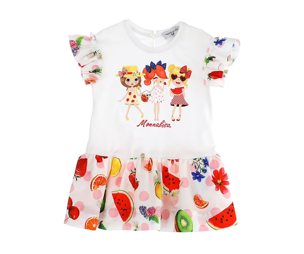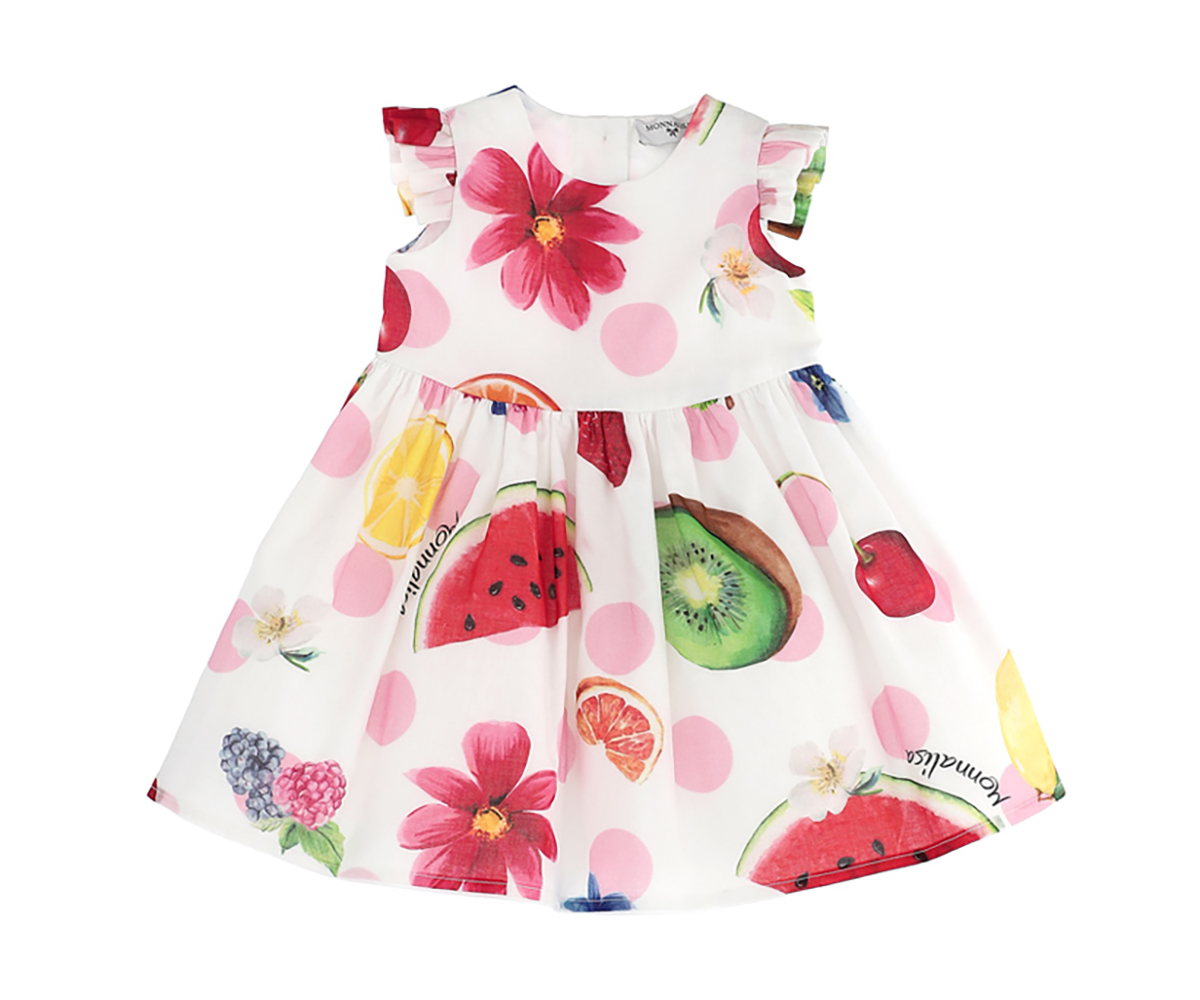 Рокля с къс ръкав с волан с плодов и флорален прин Monnalisa, 24 м.