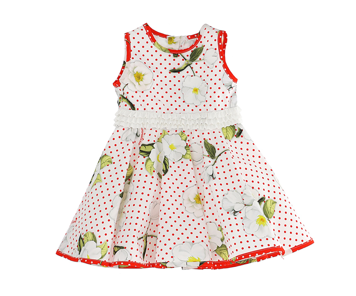 Рокля без ръкав на цветя и точки с разкроена пола Monnalisa, 24 м.