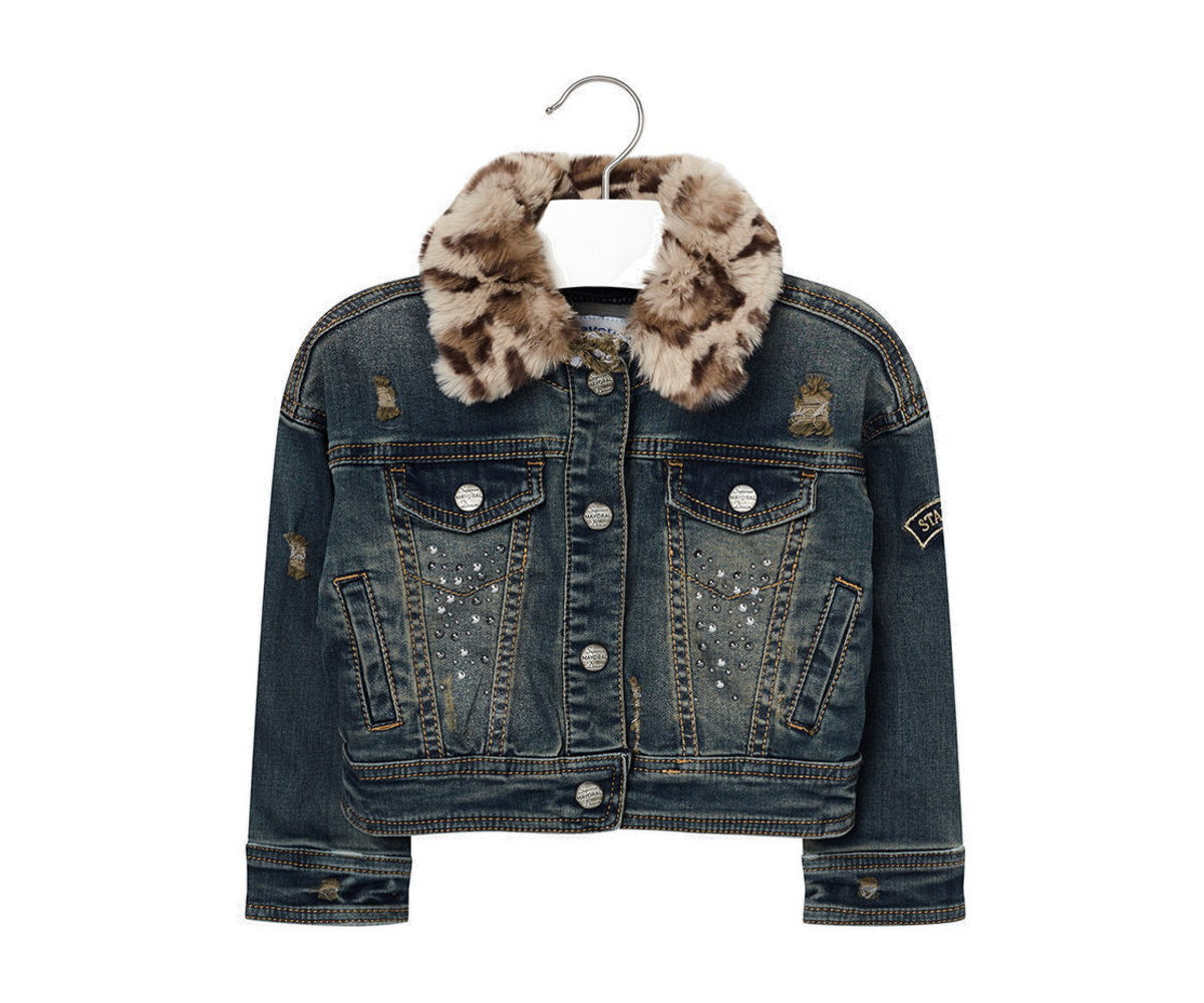 Дънково яке с изкуствена кожена яка за момиче Mayoral 18-04488-084, 5 г.